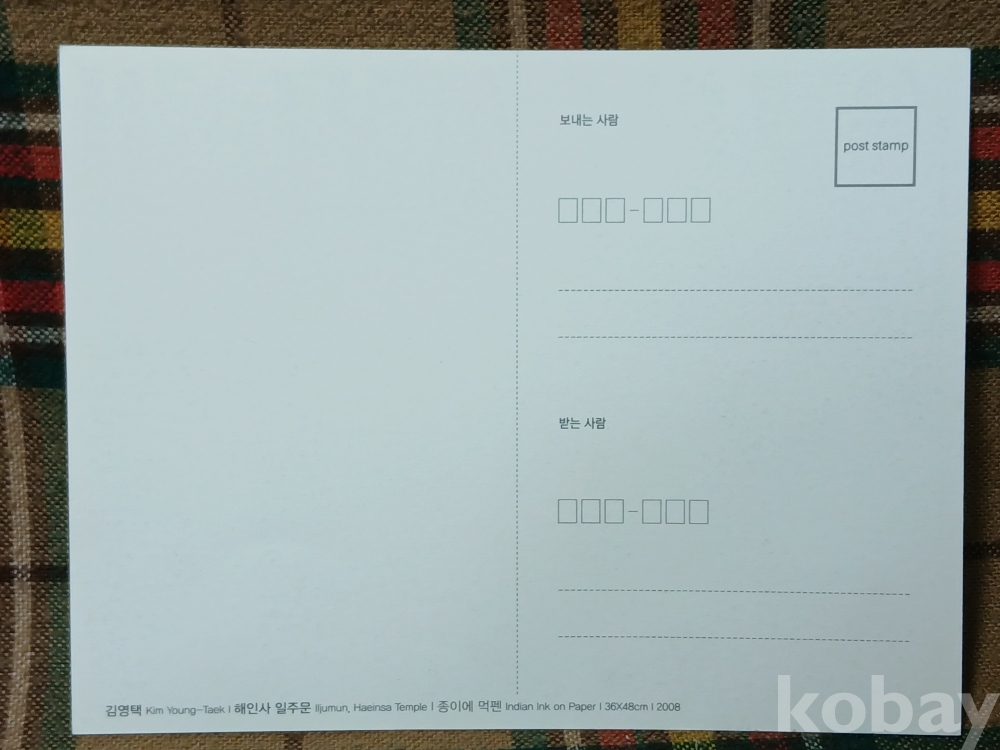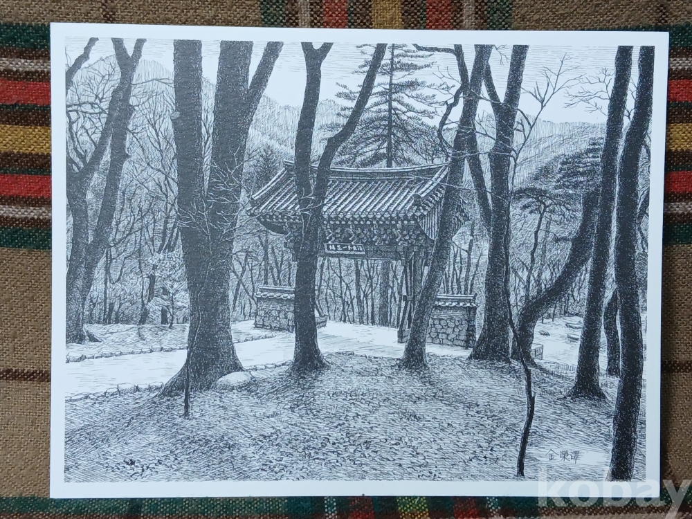 <투킴스> 펜화의 거장, 故김영택화백 판화엽서 -해인사 일주문 6장