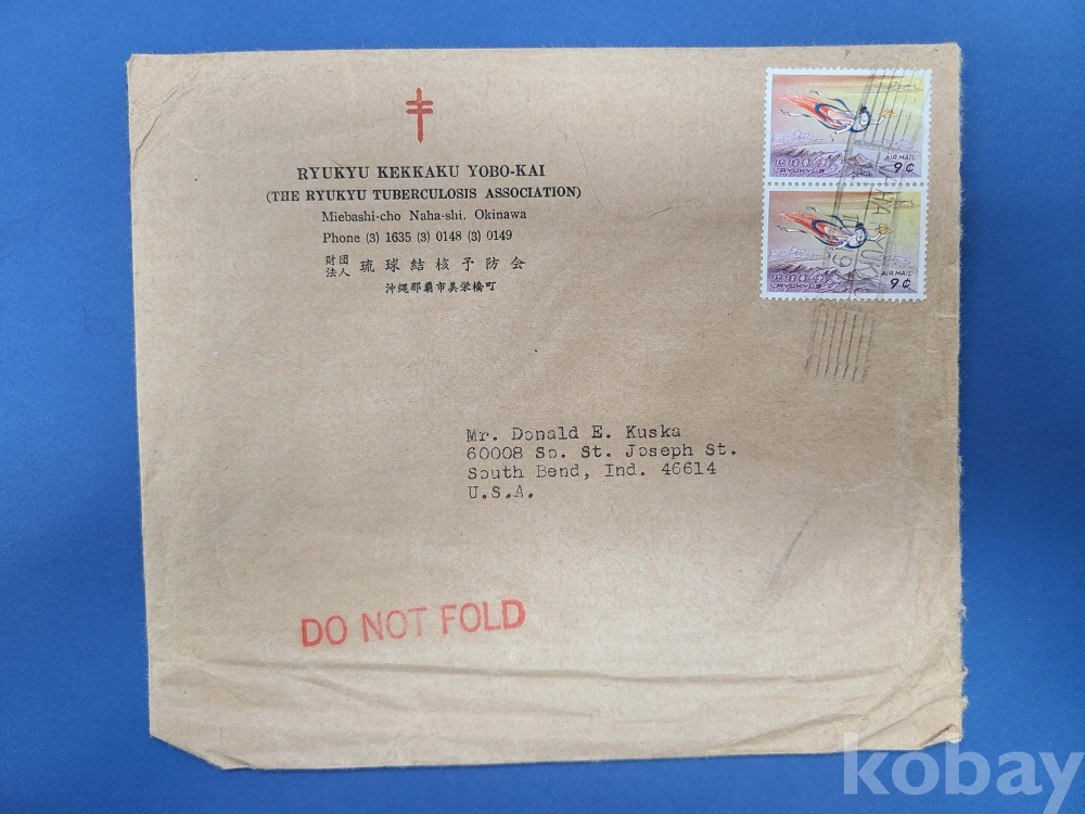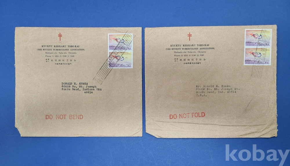 [크리스마스 씰] 琉球(RYUKYUS.류큐)/1969년 유구결핵예방회 실체봉투 2매