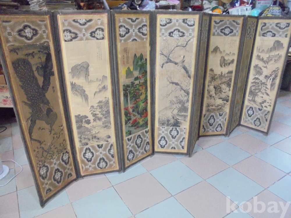 아주오래된 발달리고 광목에물들인 거의완연한 병풍으로 영인본이나 아주유명한 이백 상신등 보기드문 영적인 보존잘된그림으로 보존할만한