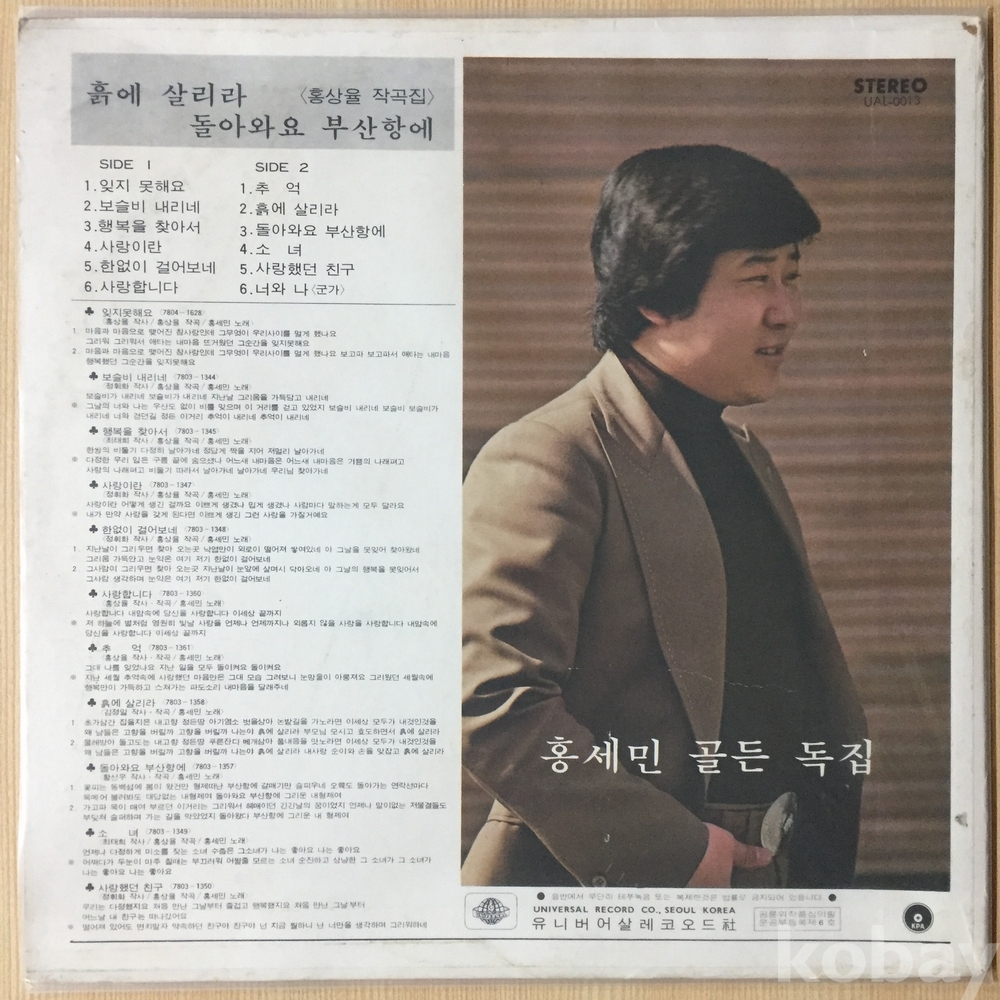 ⊙ 1978년 / 유니버어살레코드 – UAL-0013 / 홍상율 작곡집