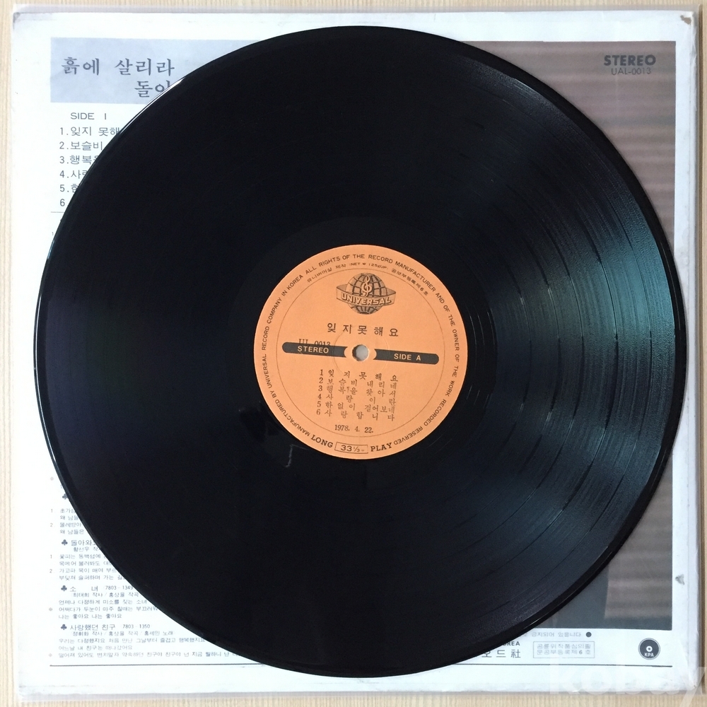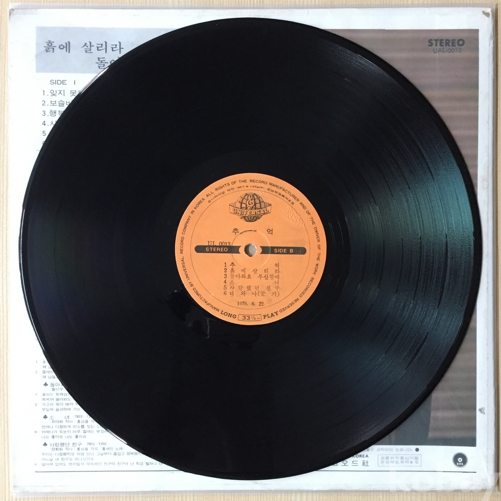 . 가요음반 대부분은 휘어짐이나 손상을 방지하기 위해 무지싱글자킷을 하나 더 사용하여 보관되었던 음반들입니다.