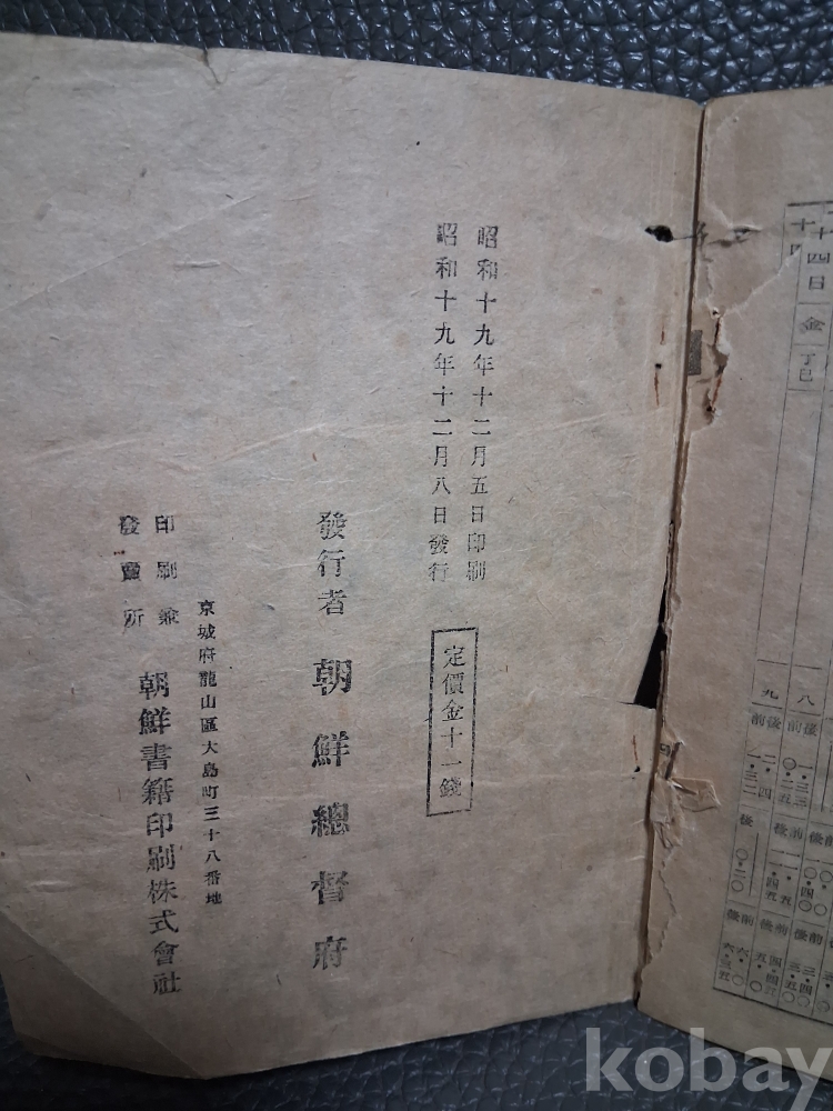 1944년 조선총독부발행 달력및요람