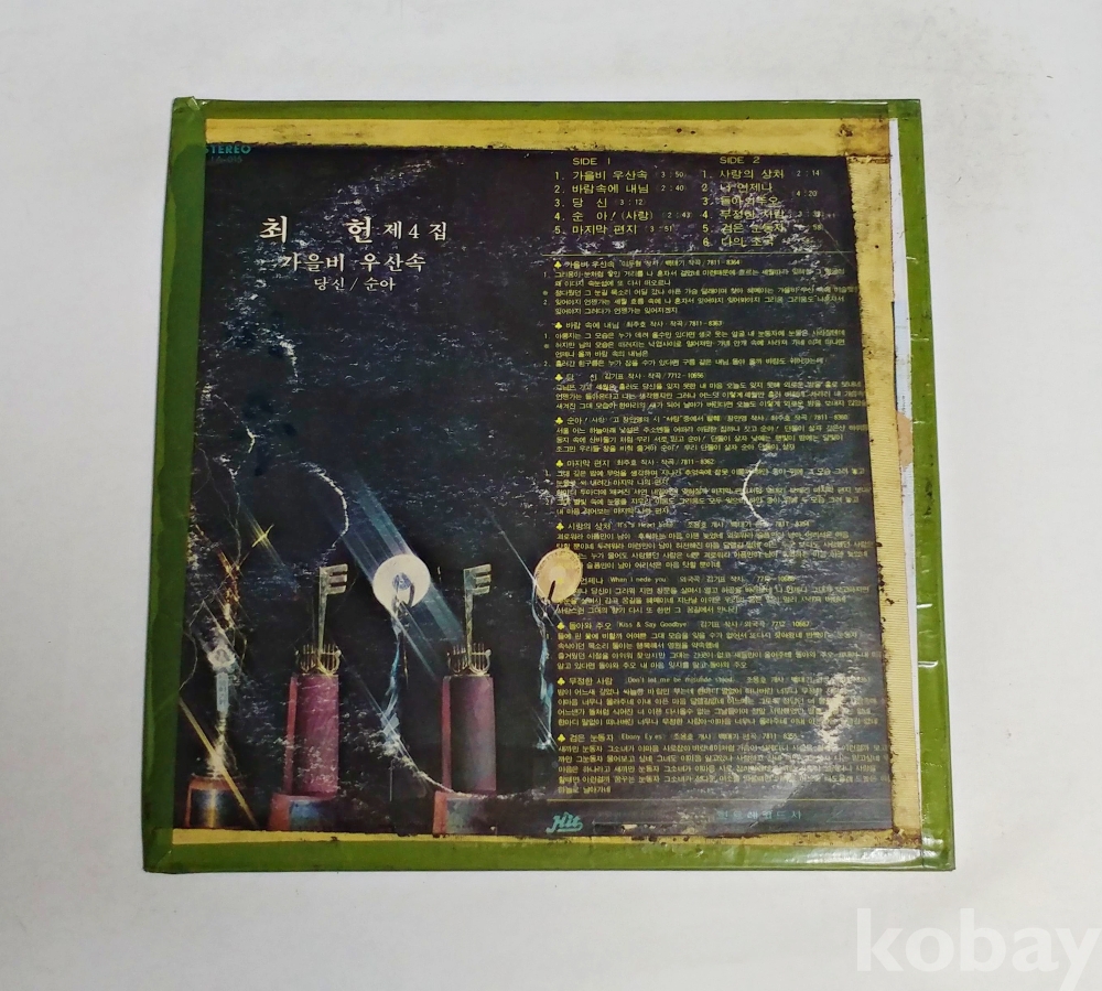 | 자켓상태 | VG : 주름, 접힘, 모서리 찢김 다수 | 음반상태 | EX : 재생에 영향 없는 가벼운 기스 존재 | 발매정보 | 알수없음 | 가사지여부 | 무 |