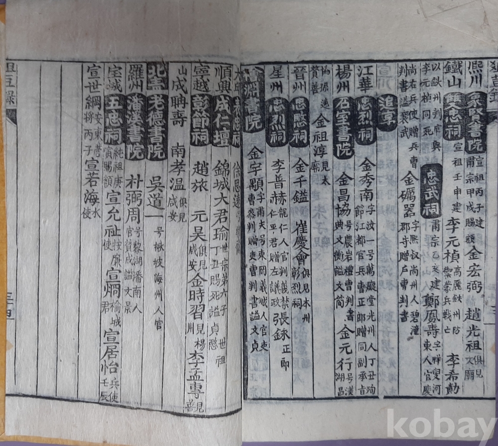 조선시대 태묘, 문묘와 각 서원 및 사우에 배향된 선현들의 성명과 자 호 본관 관직 시호등 약전을 기록한 책.