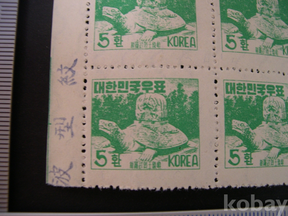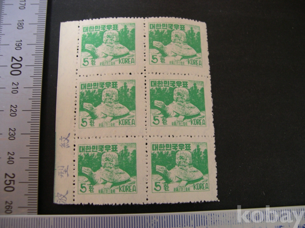 좌변지부 6매블럭 #1120 : 5환 거북비, 환화 1차 보통 - 파형투문 (1953. 4. 5)