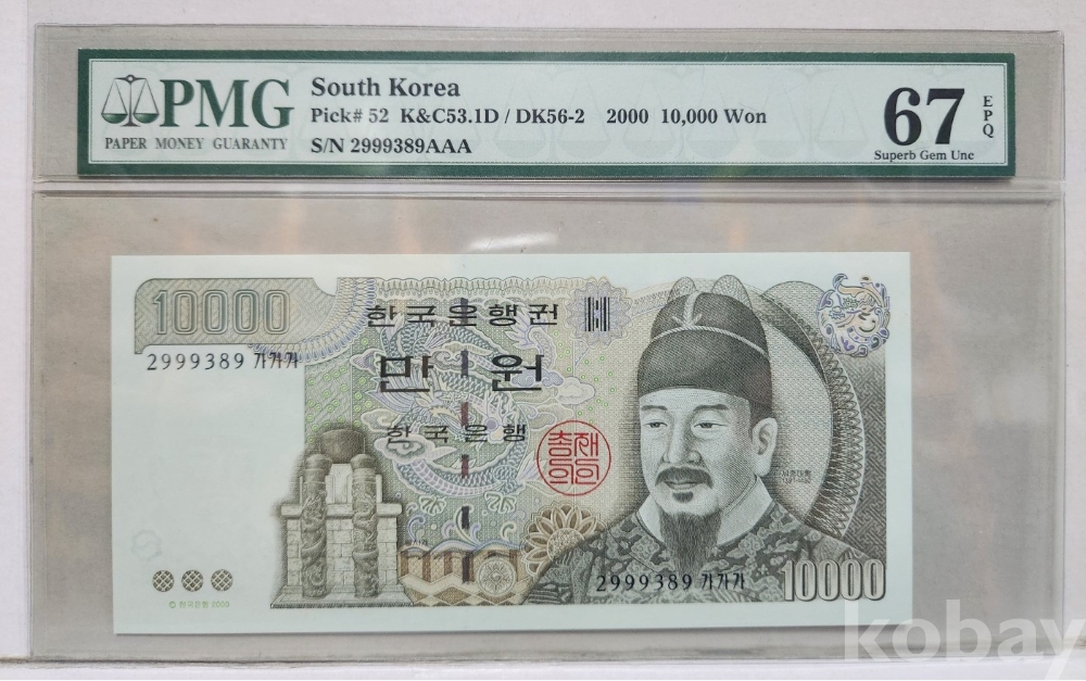 -대한민국 5차 만원 가가가 29포인트 PMG 67 고등급이며 그레이딩 입니다.