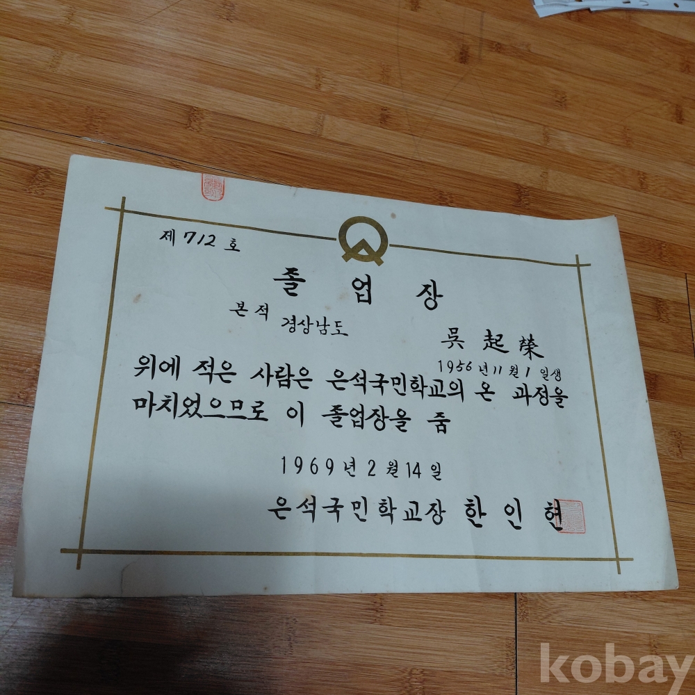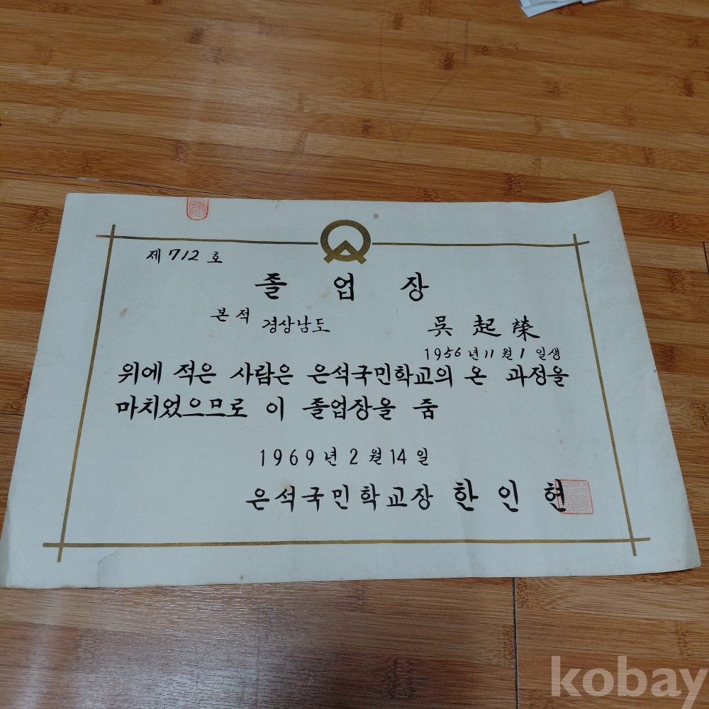 1969년서울은석국민학교 상장자료 한점 올려드립니다