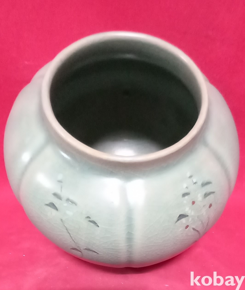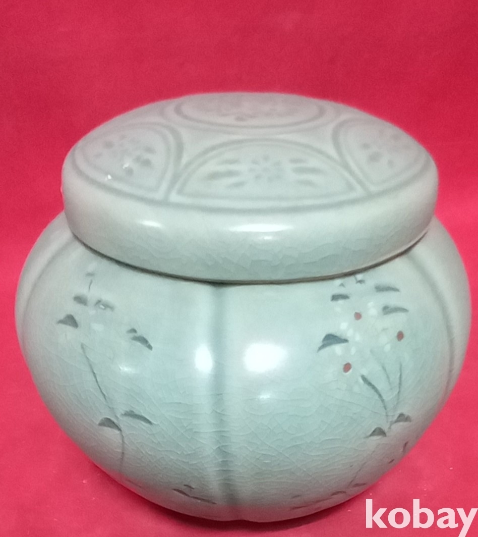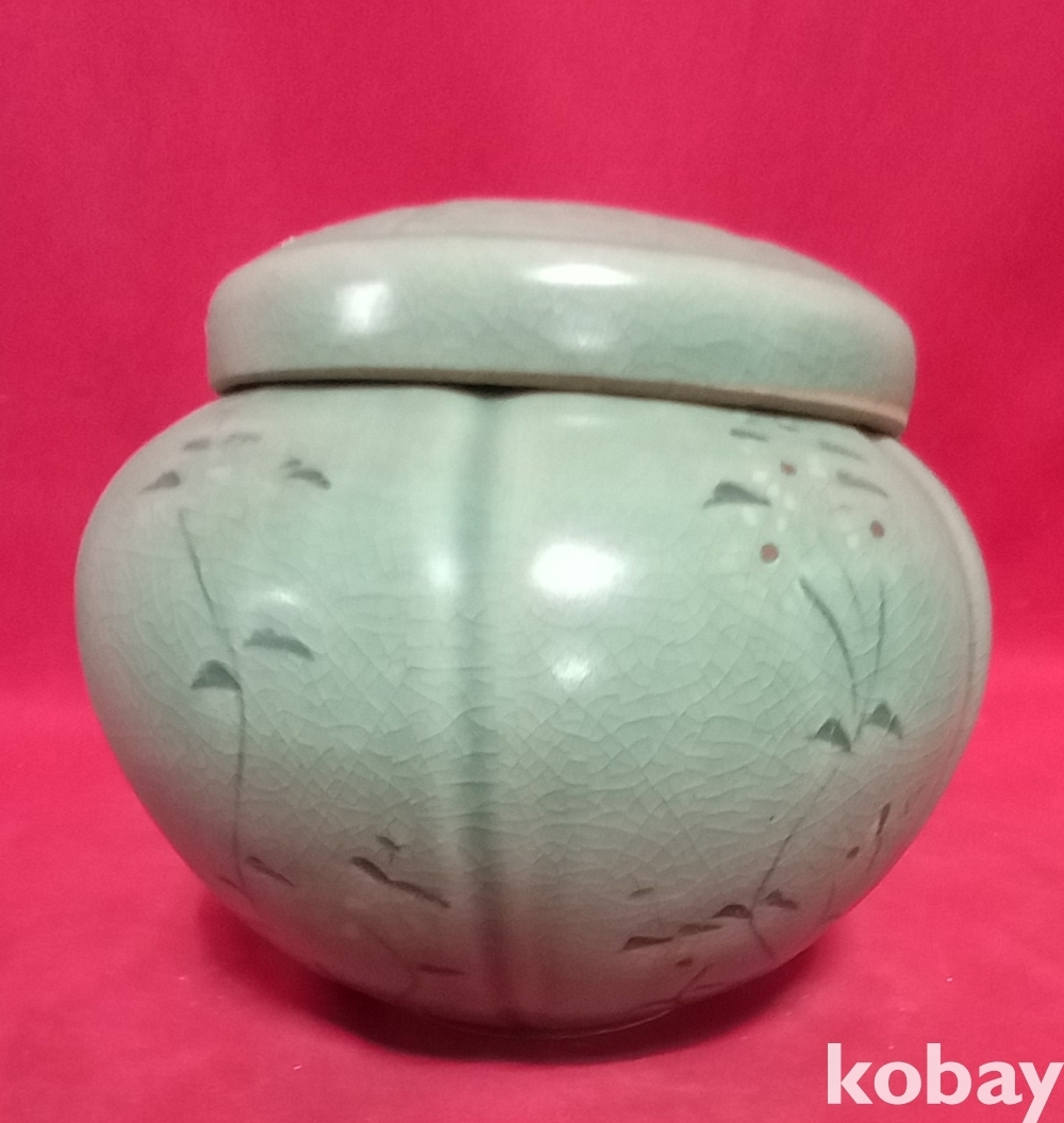 청자 꽃문양 뚜껑있는 호입니다,