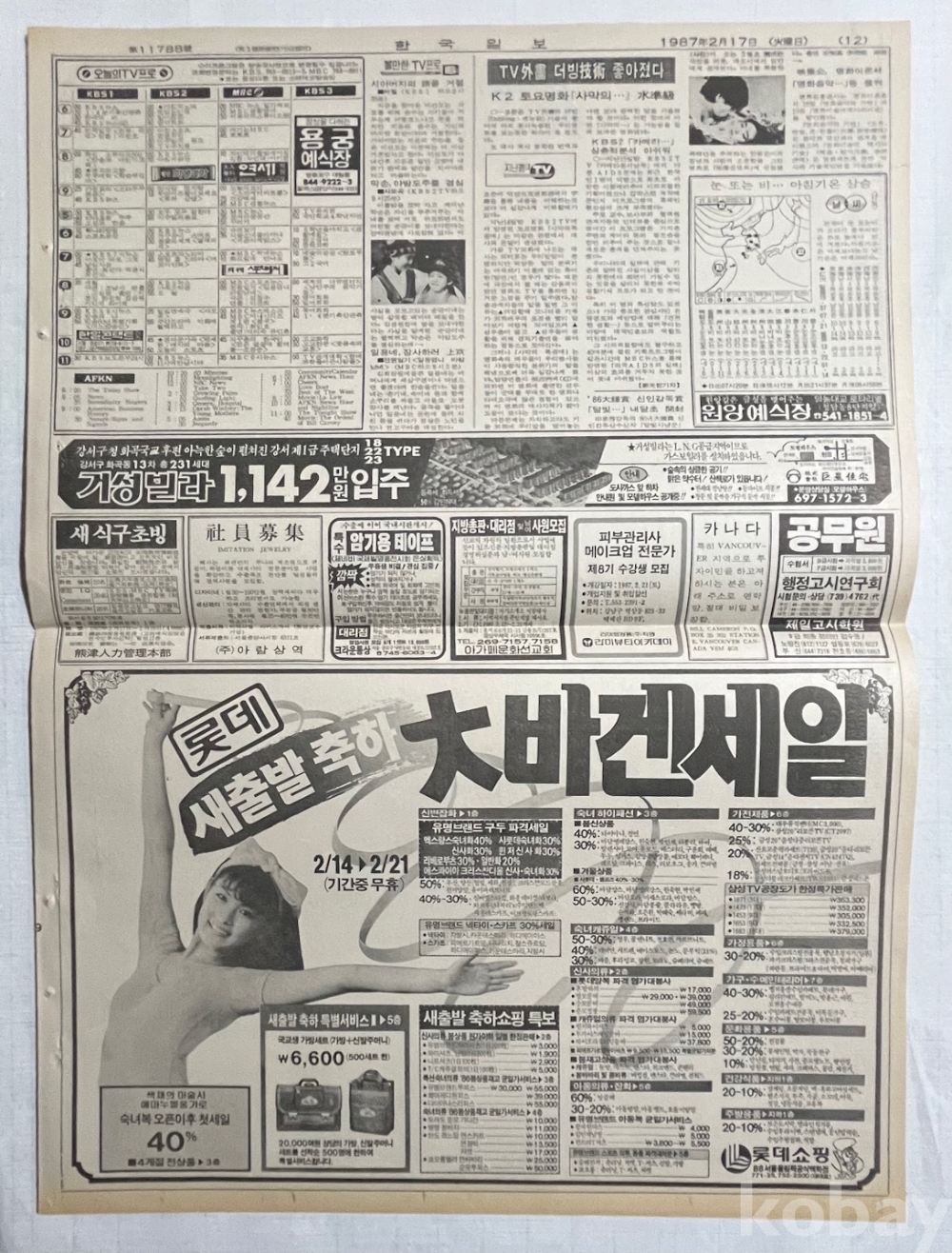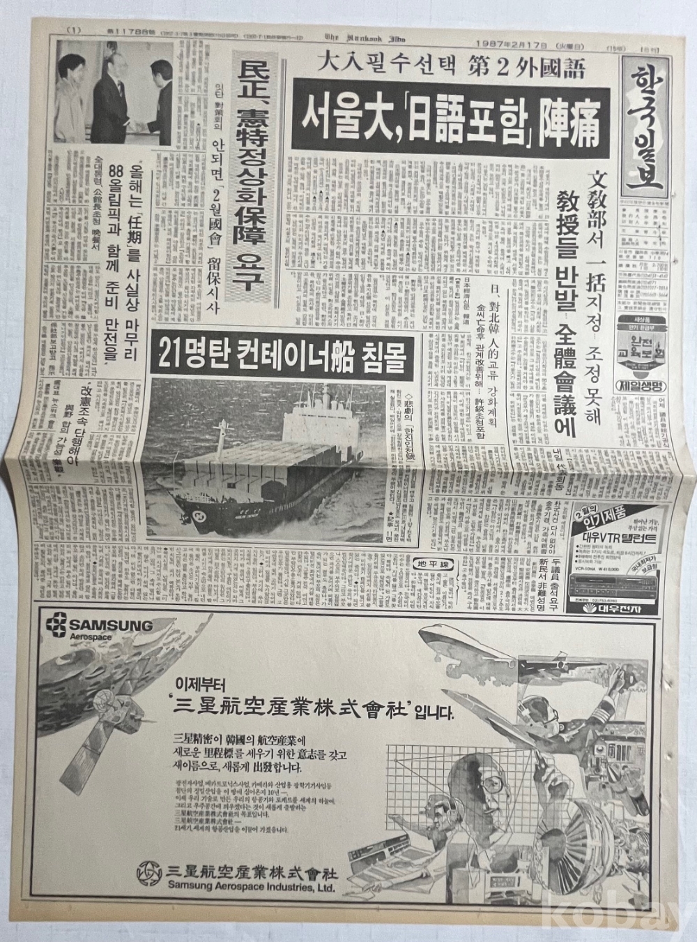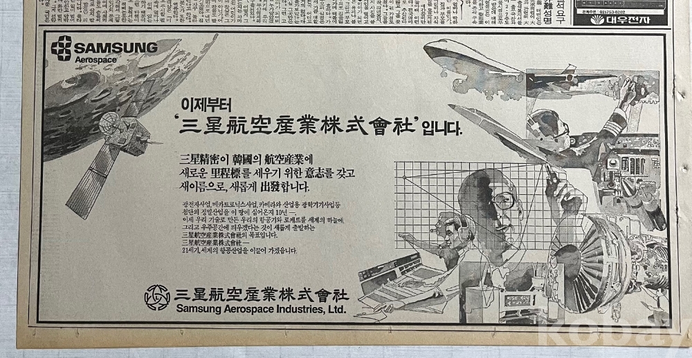 삼성항공산업 광고가 실린 1987년 한국일보 낱장입니다.