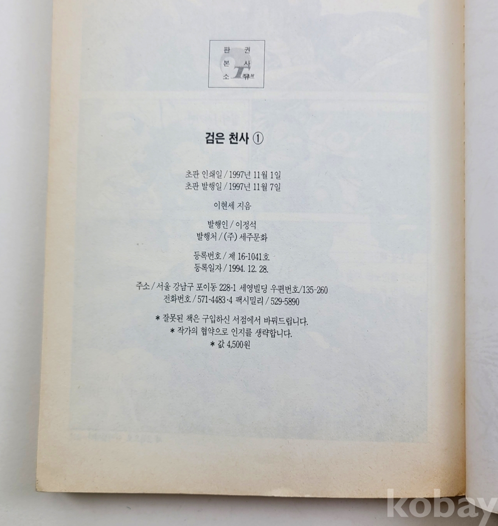 물 품 명 | [팀매니아코믹스] 이현세 : 액션극화 / 검은 천사 (1,2)완결 총2권 / 1997년 초판 / 세주문화 |