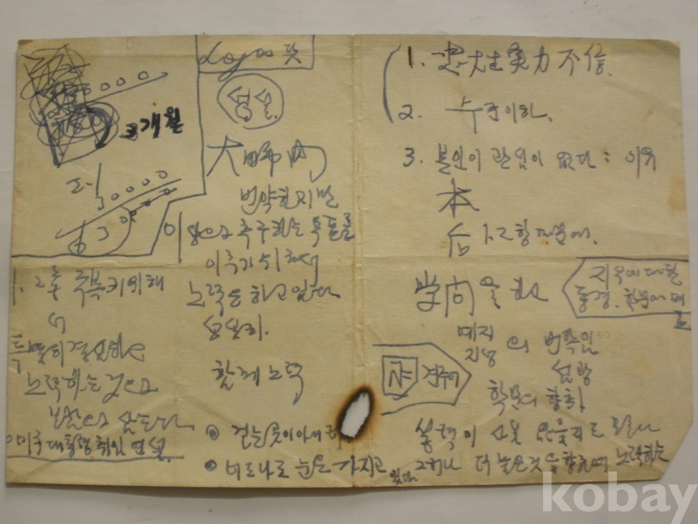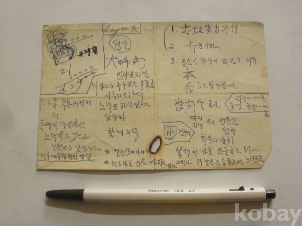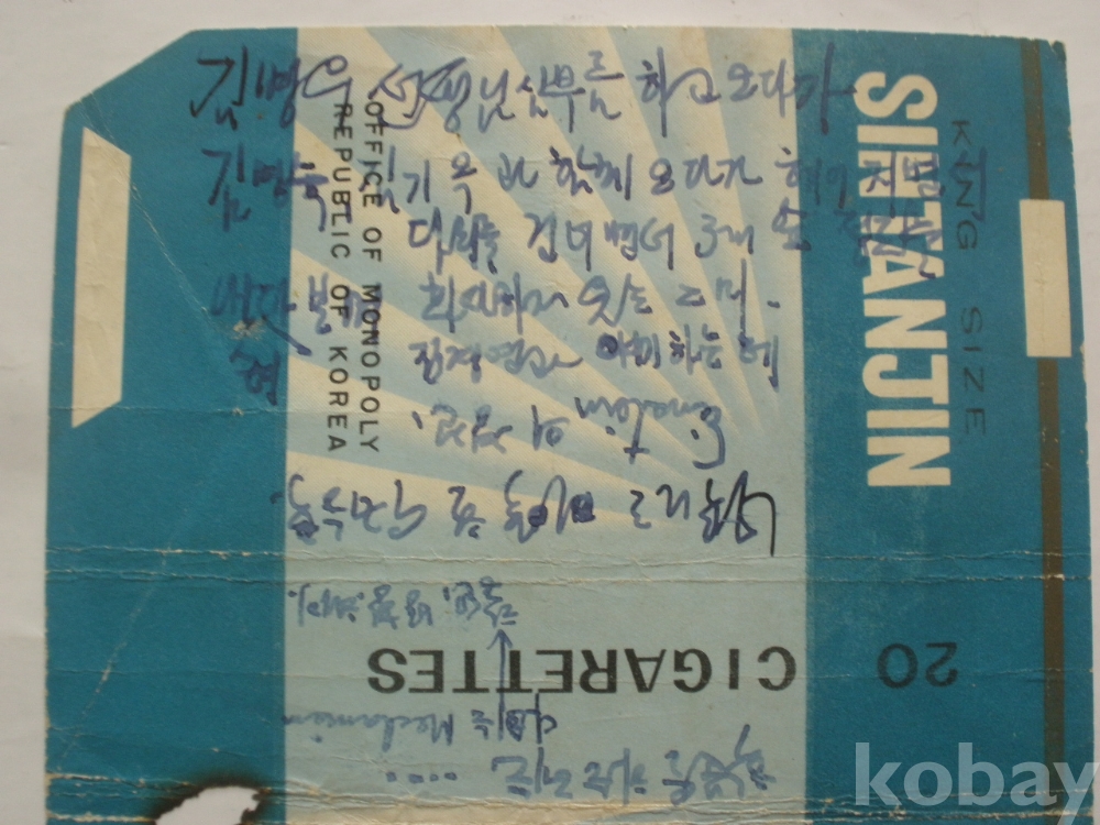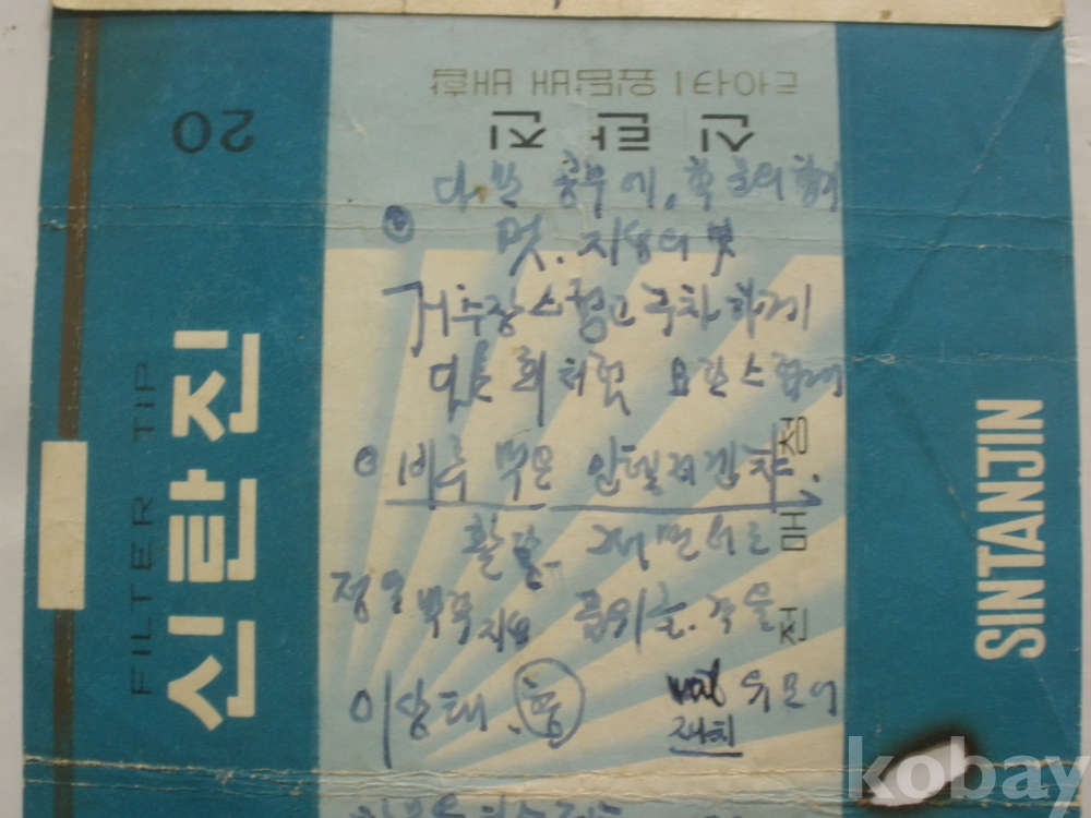 신탄진 담배 포장지 - 앞뒷면에..충대생 실력 불신 등 단상 등을 기록