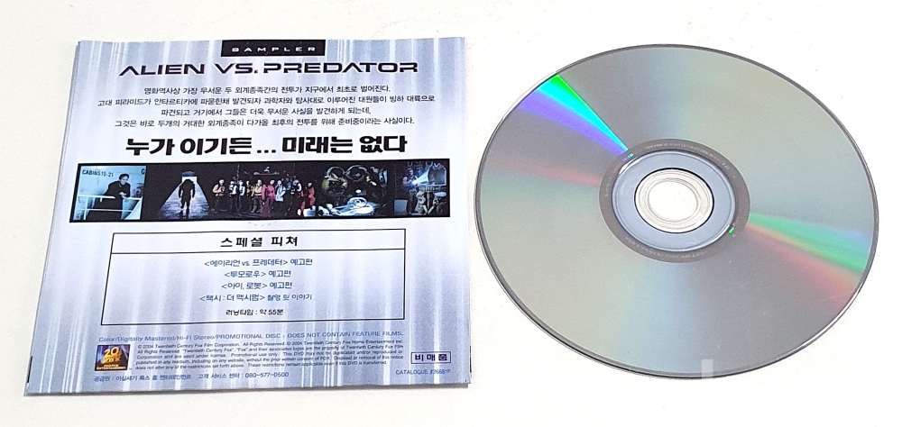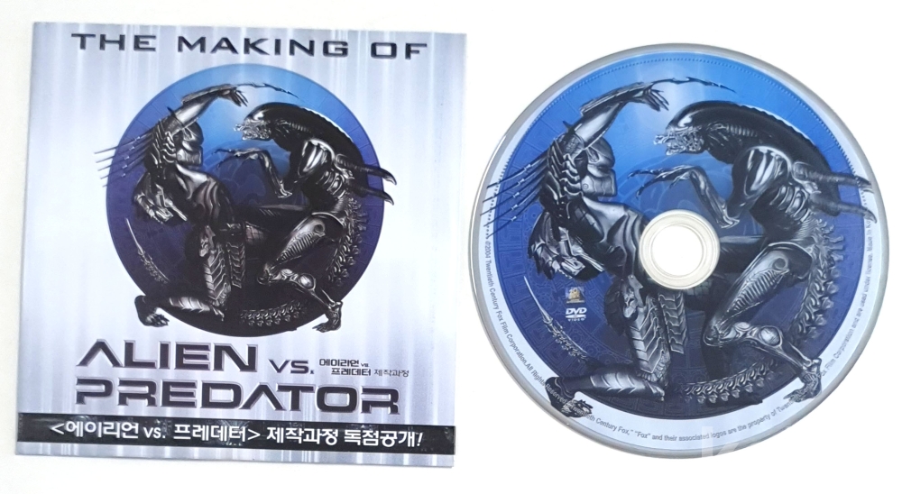 물 품 명 | [비매품] 영화 ' THE MAKING OF ALIEN vs. PREDATOR 에이리언 vs. 프로데터 ' 제작과정 독점 공개 DVD / 2004년 |