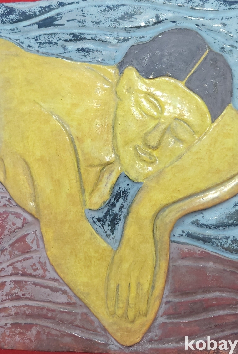 도자기에 그림을 그리고 도자기를 빚는 기법으로 열 처리를 거친 도자기판화입니다,