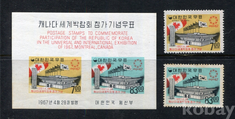 - [시트/우표] 1967년 미사용 캐나다 세계박람회 (All MNH : Mint Not Hinged) : 이미지 참조하세요