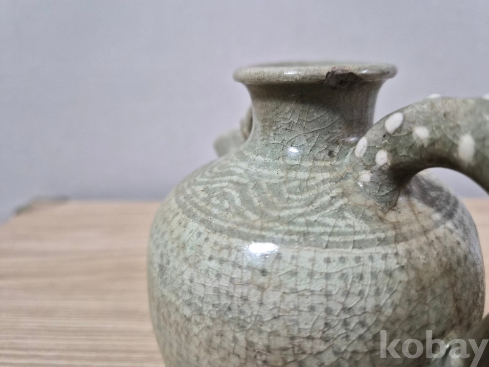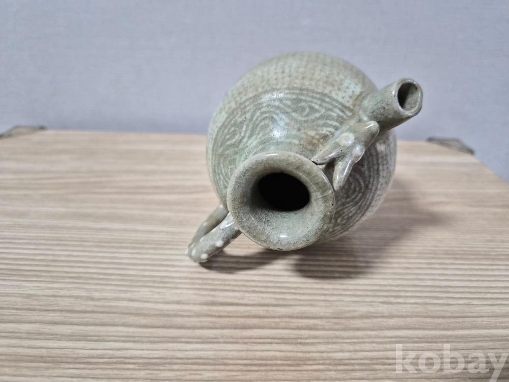 분청사기 화문과국화 손잡이에는백상감퇴화문 출수구윗부에는 동물모양의형상이있습니다.상태는 구연부 팀1곳 그외 상태양호하고 세월감이 있어보이나 아직감정을 받지않은 상태이며 사진참조하시고 신중한 응찰 부탁드리며 진위여부로 반품은 정중히 사양하겠습니다 좋은감상하세요