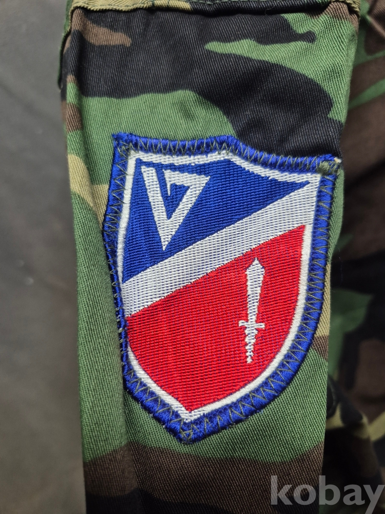 1990년대 육군 제 17보병사단 번개부대마크 마크 와 상사 계급장 개구리 군복 상의 110사이즈 하의 96사이즈 길이 110 32*96