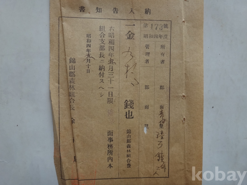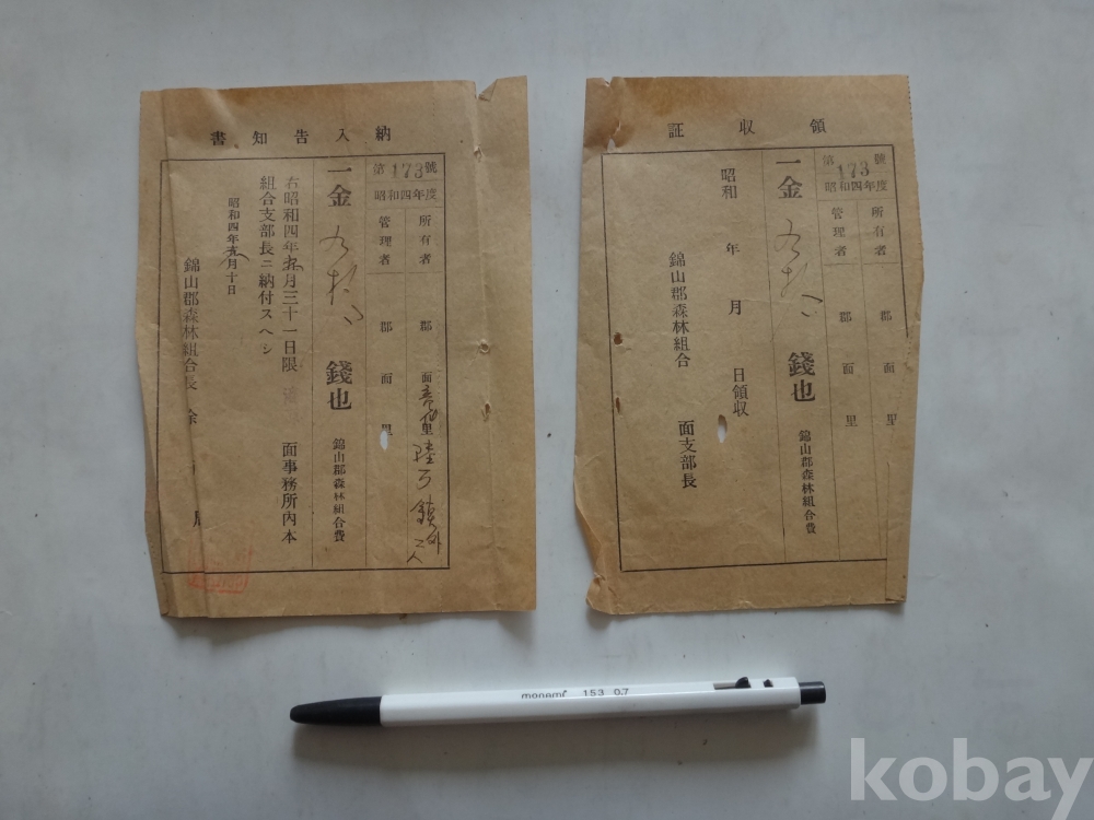 금산군 삼림조합비 - 영수증 2매일괄 (소화4)