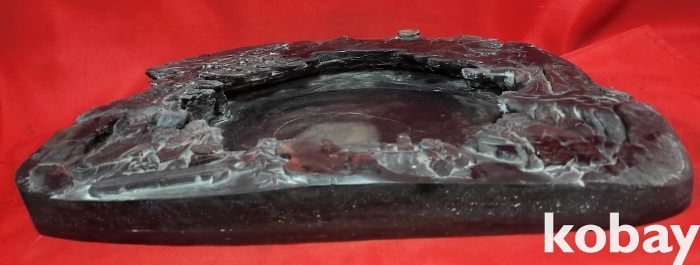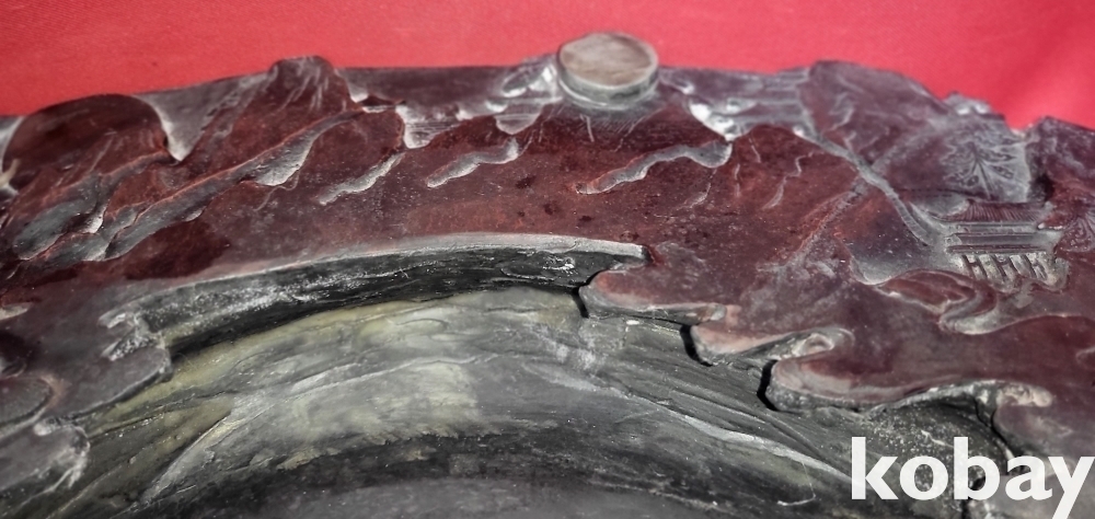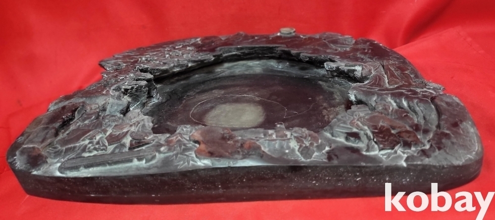 청나라 강희 6년 붉은색 옷을 입은 산수 신선문 초대형급 비취박힌 벼루입니다,