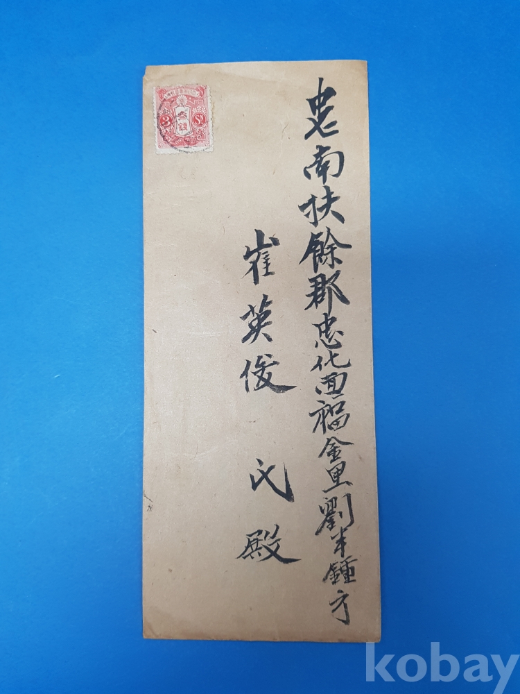 **** 일제강점기 3전 단첩 경의선 金村驛前 →부여군 실체봉투