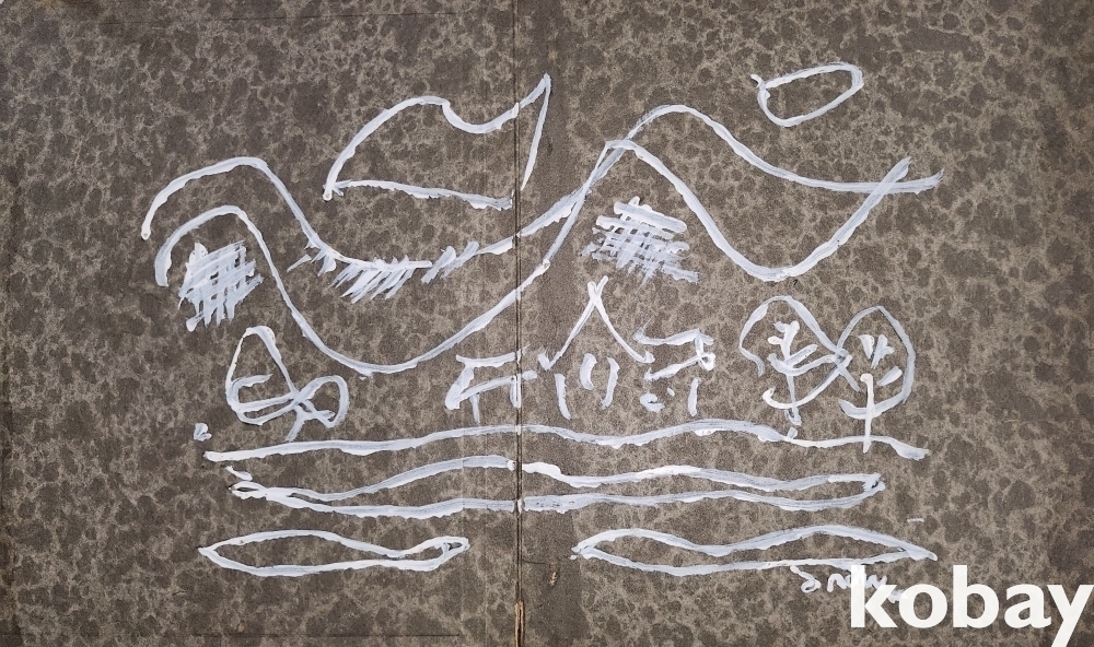 책처럼 접어진 판 위에 그리고 우측 하단에 화가의 사인이 보입니다,
