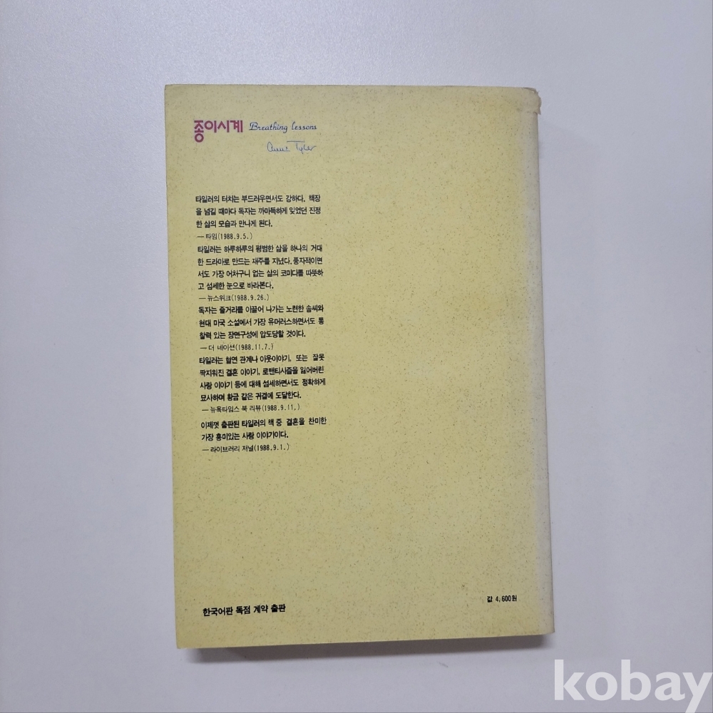 [천원경매] 앤 타일러 (Anne Tyler) 의 종이시계 ; 중급/서고I08