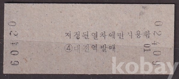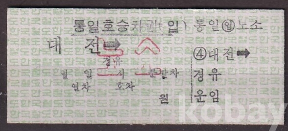 - 미사용 통일호 승차권 노소 " 대전역 발매 "