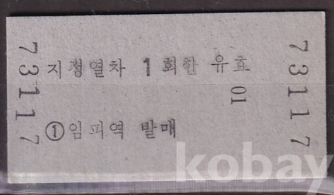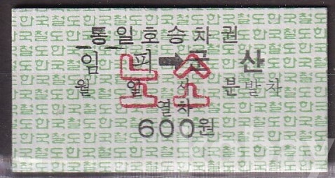 - 미사용 통일호 승차권 노소 " 임피 ▶ 군산 " 600원