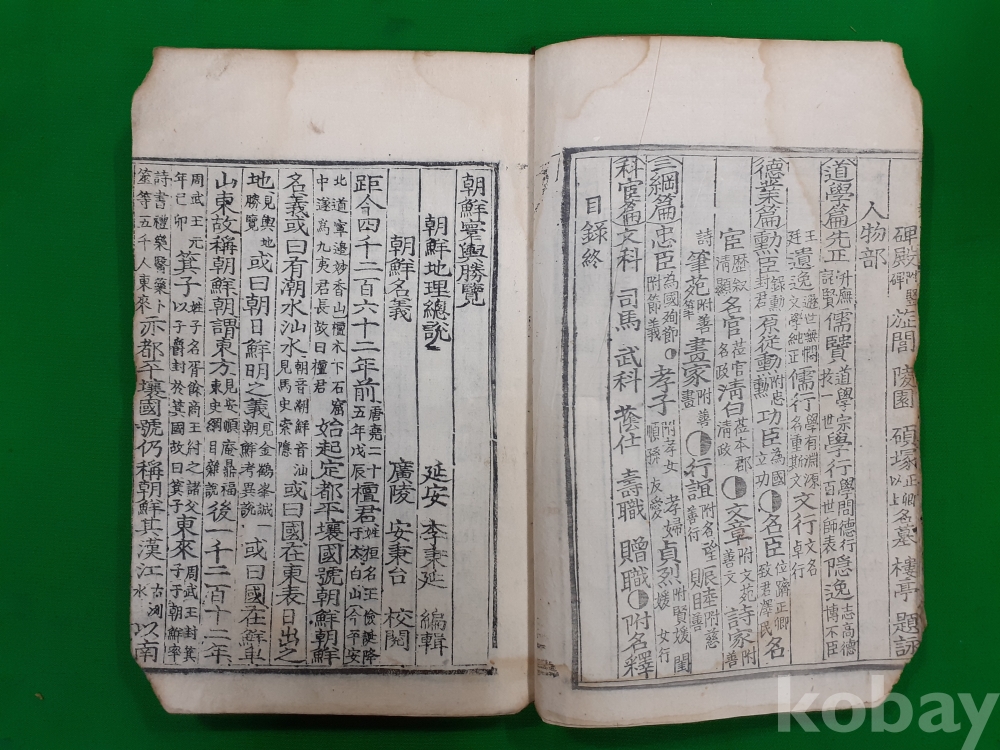 이 책은 조선의 지리, 역사, 인물 등을 기록한 지리서입니다.