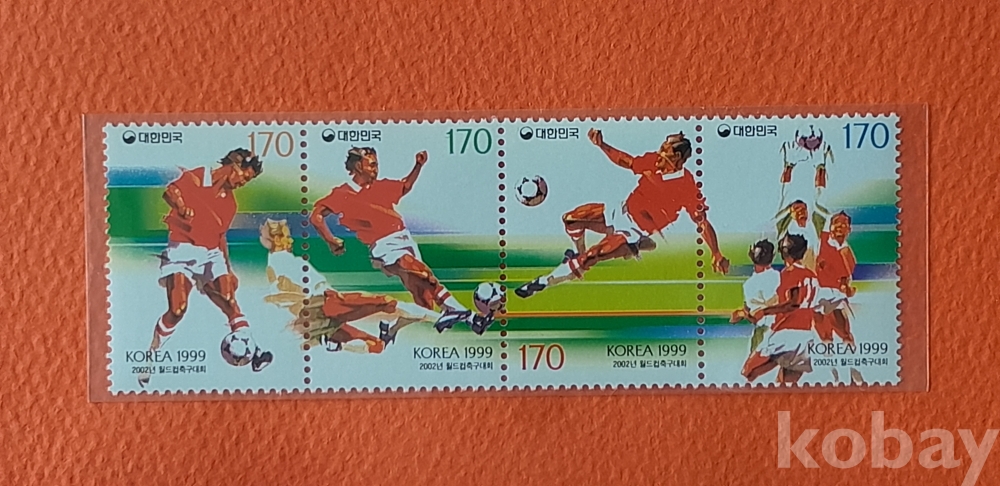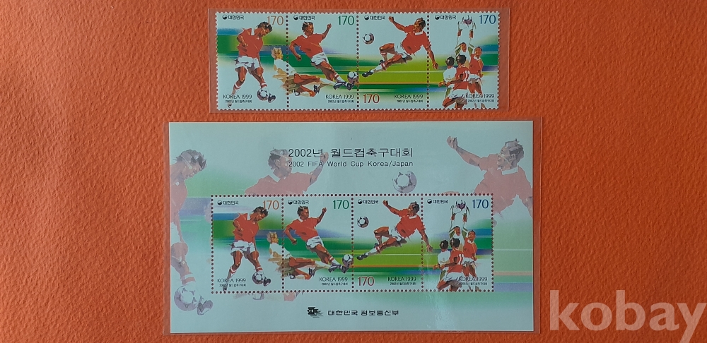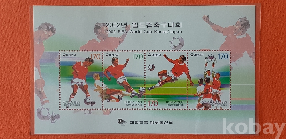 2002 월드컵 축구대회 4종 우표와 시트 묶음(1999년) 입니다.