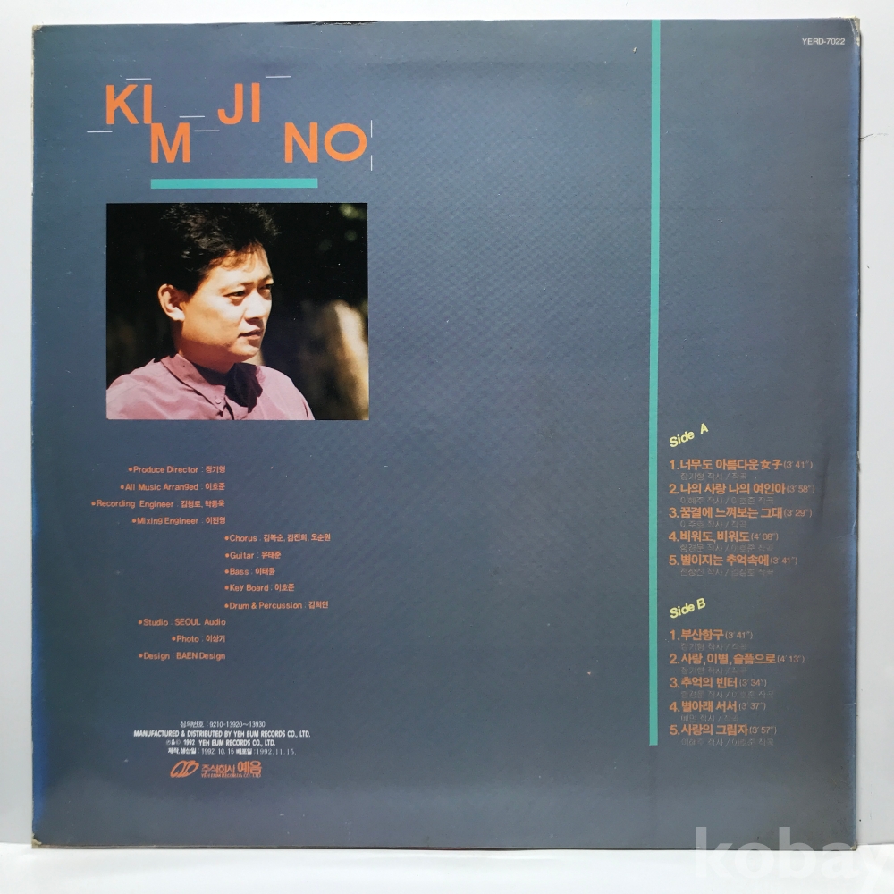 LP 35,850-26 김지노 - 너무도 아름다운 여자 . 92 예음 자켓 EX+ 알판 NM