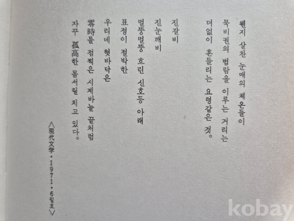 1958년 純粹詩同人誌 『詩와 詩論』에 「七夕」 「五月의 逆說」을 발표하며 詩壇에 등단.