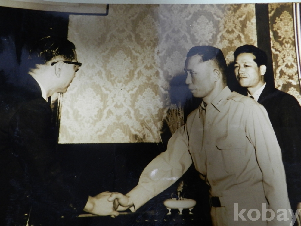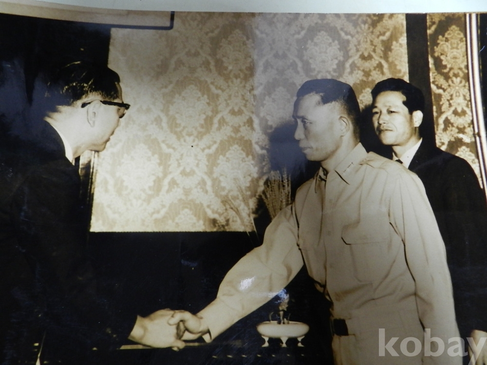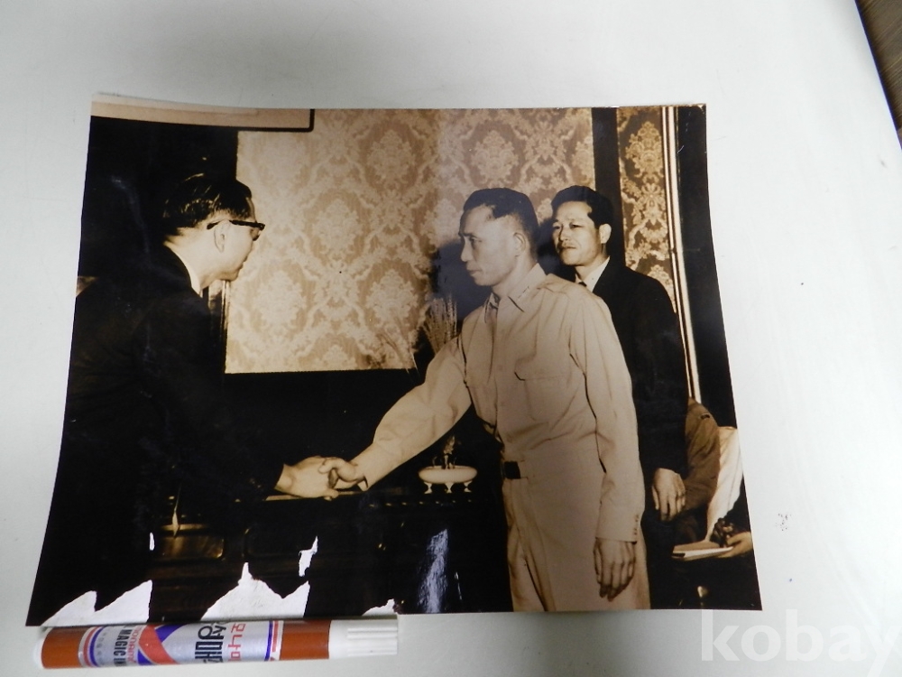 가로30세로24cm 의 군복 차림의 박정희 재건의장 시절에 실세였던 정일권 김종필 함께 찍은 사진 입니다 상태 이미지 참고 바랍니다