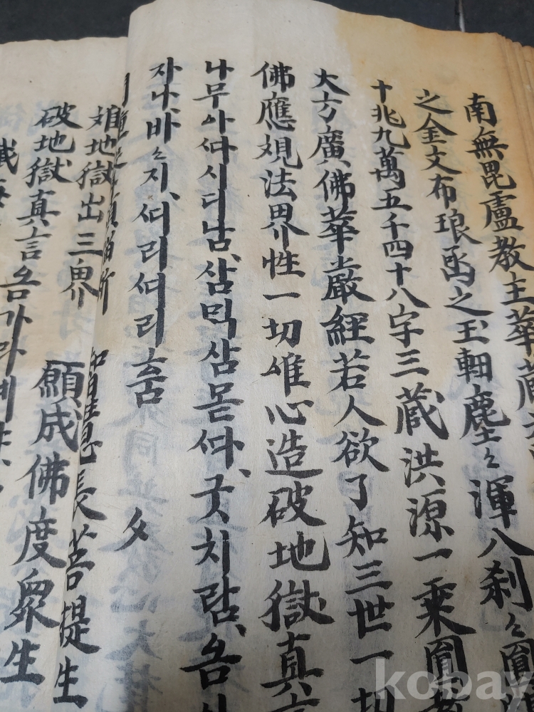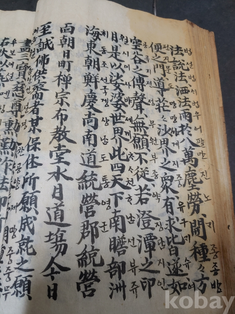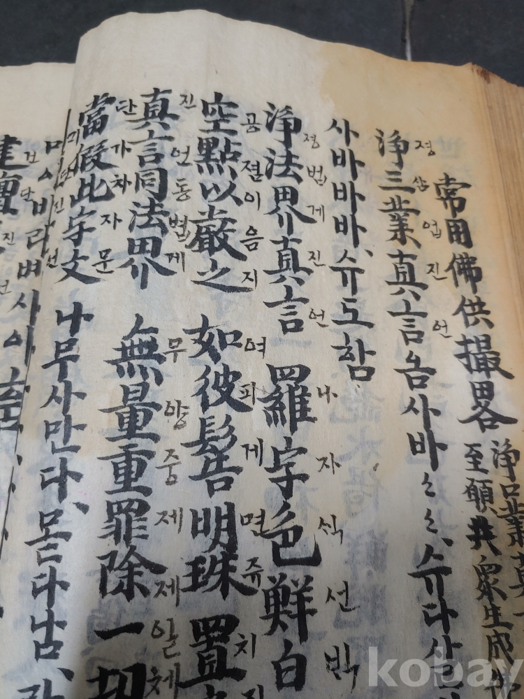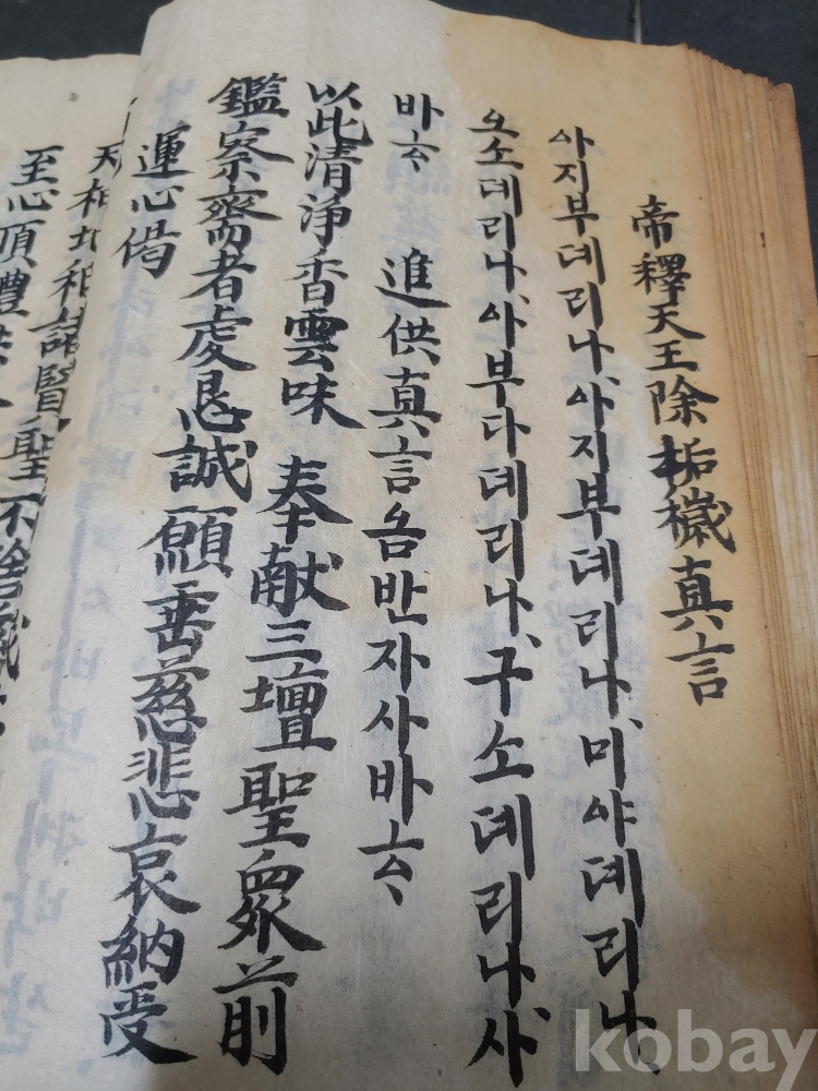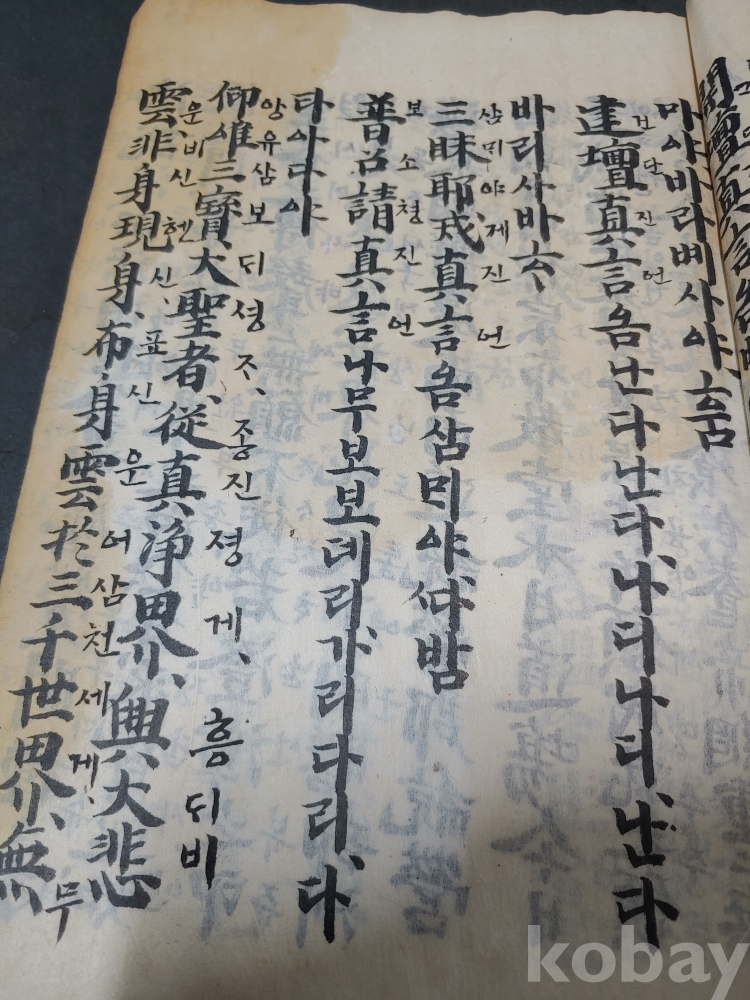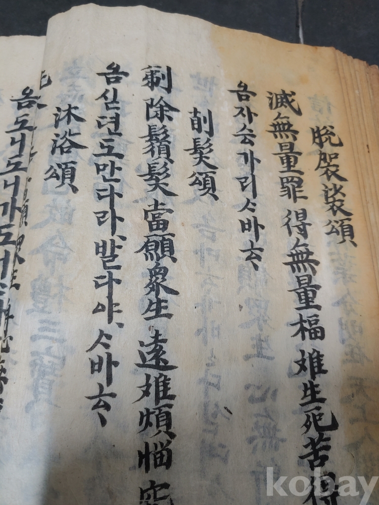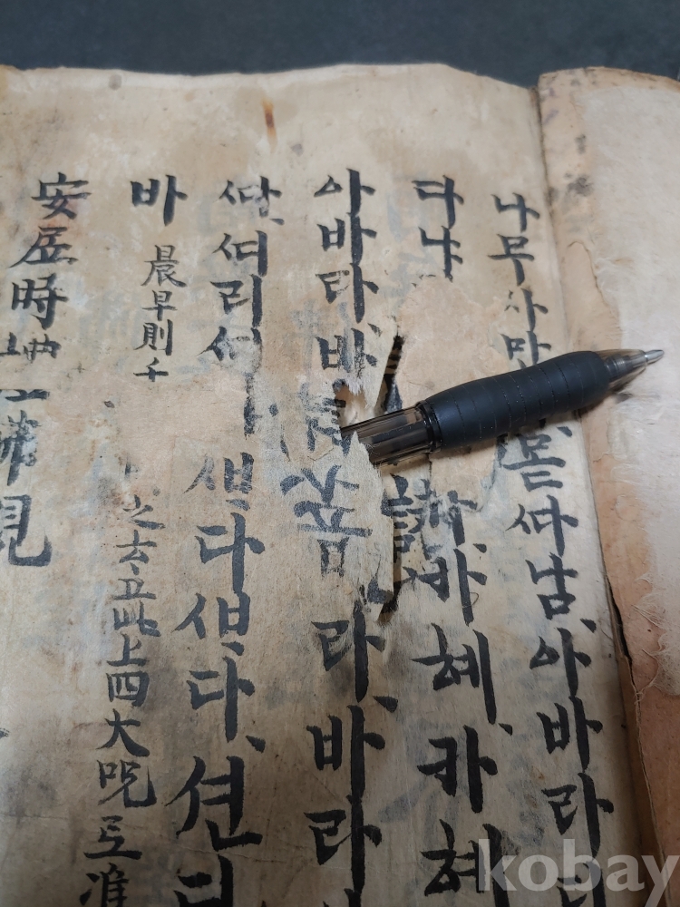 명필로 단정하게 아래 한글음 고어체와 한자를 병행해서 잘 필사를 한 큰 글씨체에 필사본
