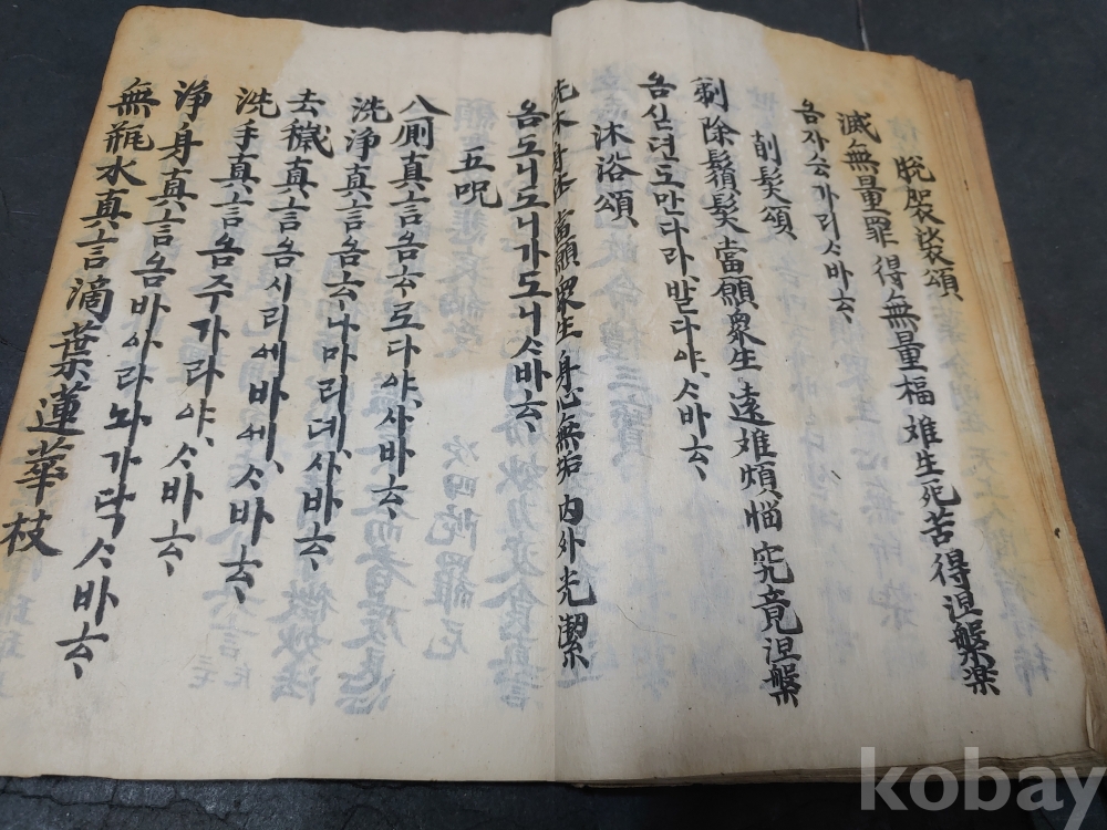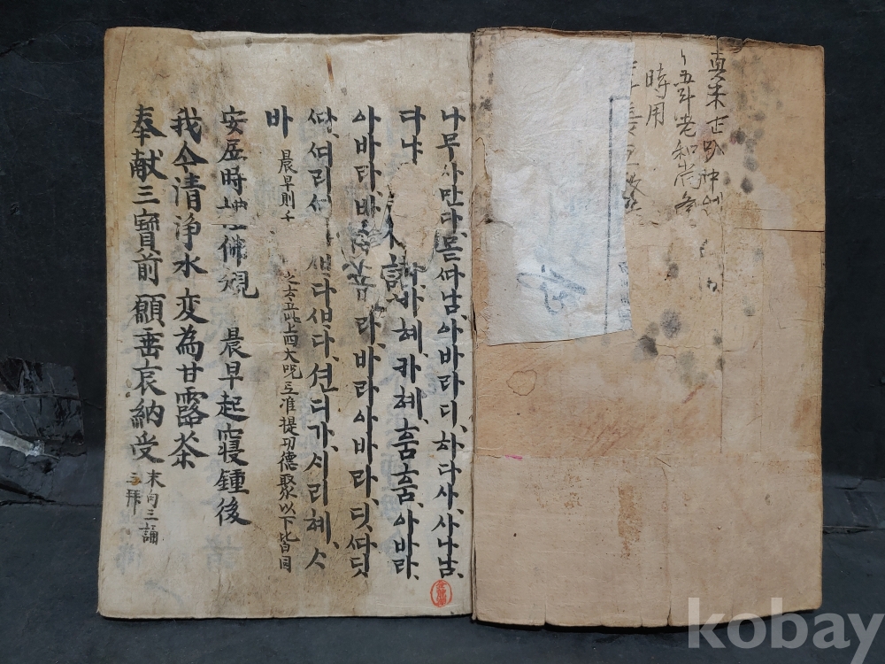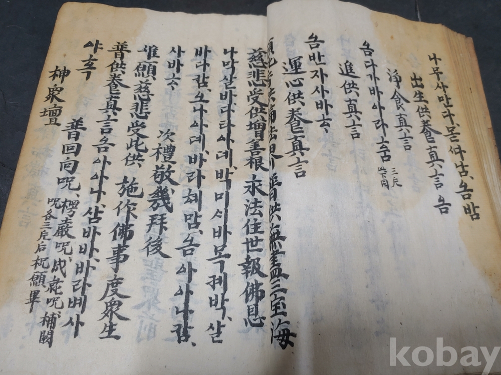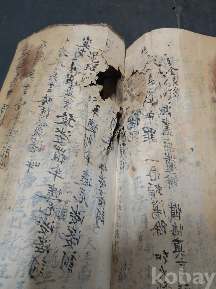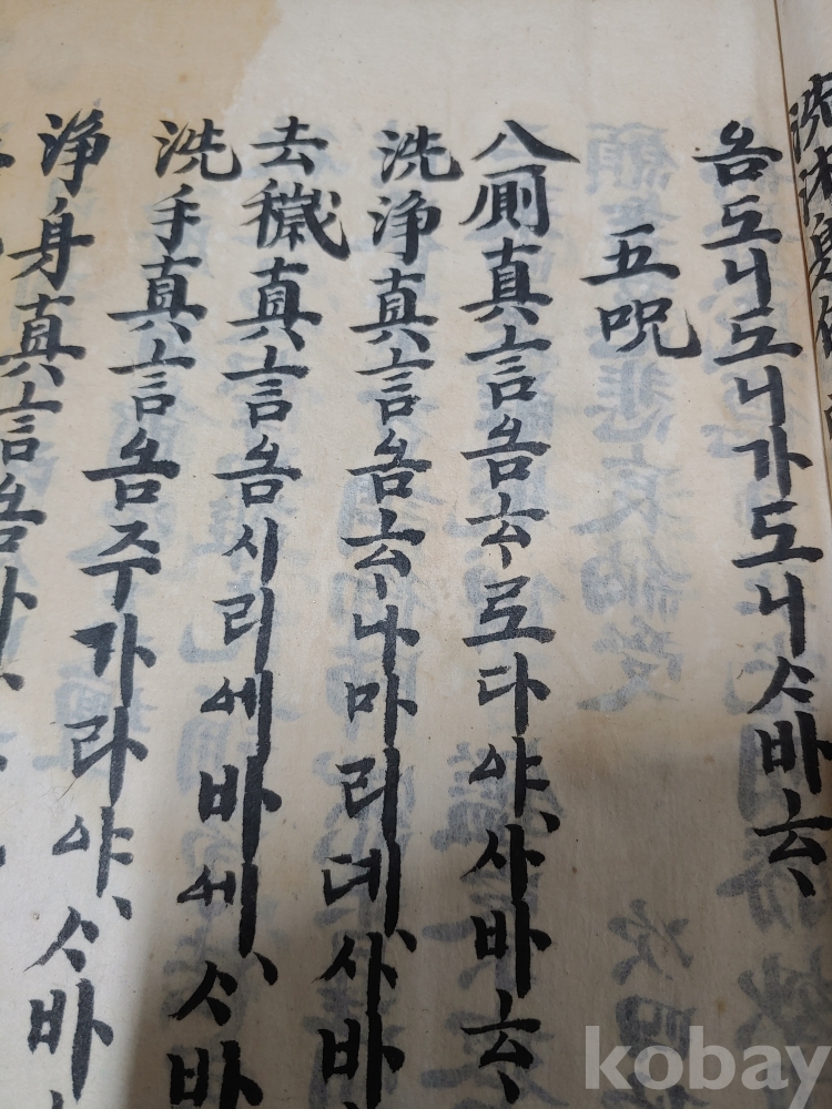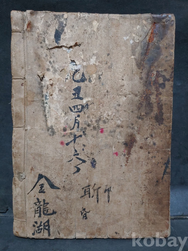물이 묻어서 떡진 부분과 떡진 부분에 일부 글씨가 앞부분에 탈락이 된 부분이 있으며 뒷면에 떡진 부분과 일부 떨어져 나간 부분이 있으오니 참고로 하시고 신중한 입찰을 부탁 드립니다