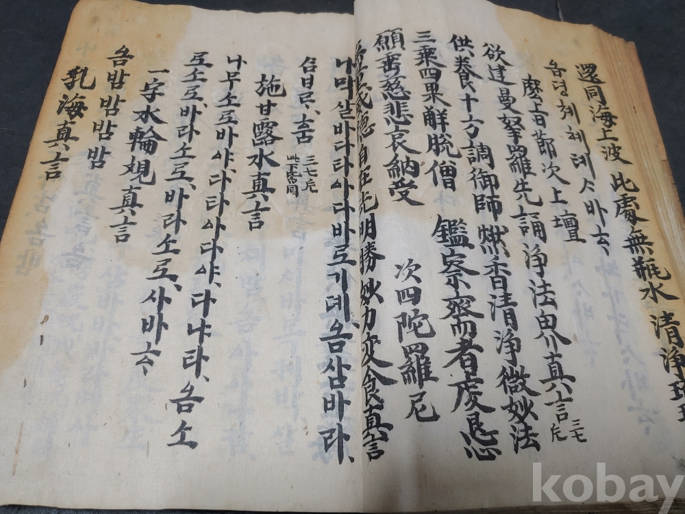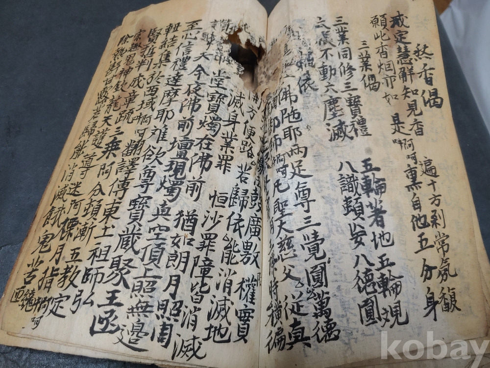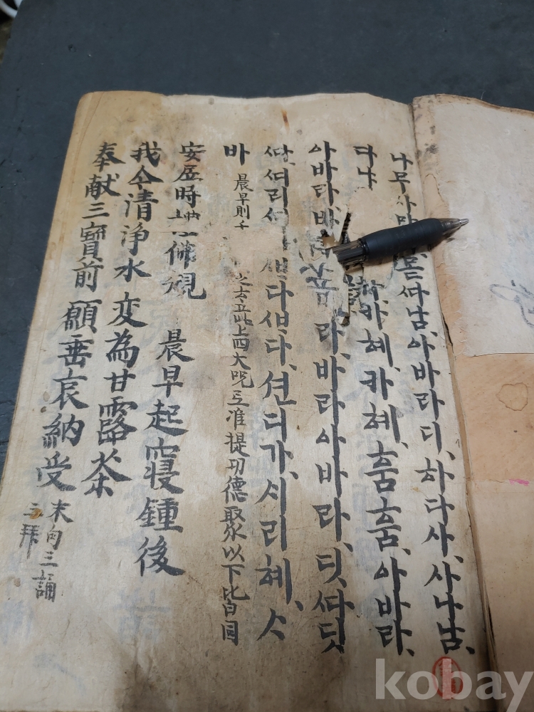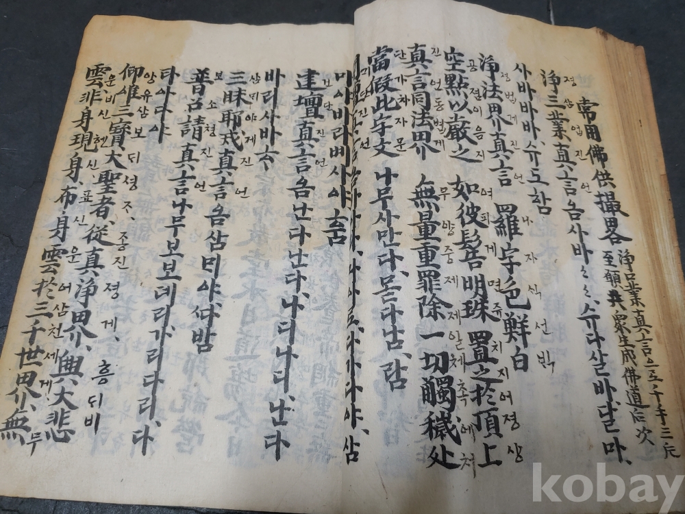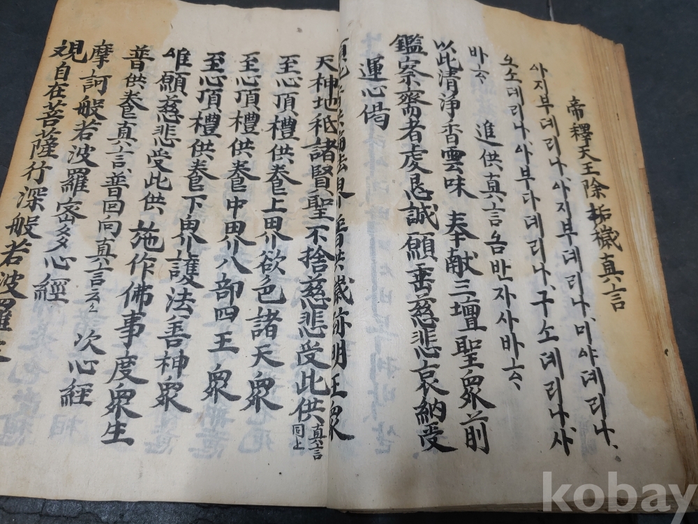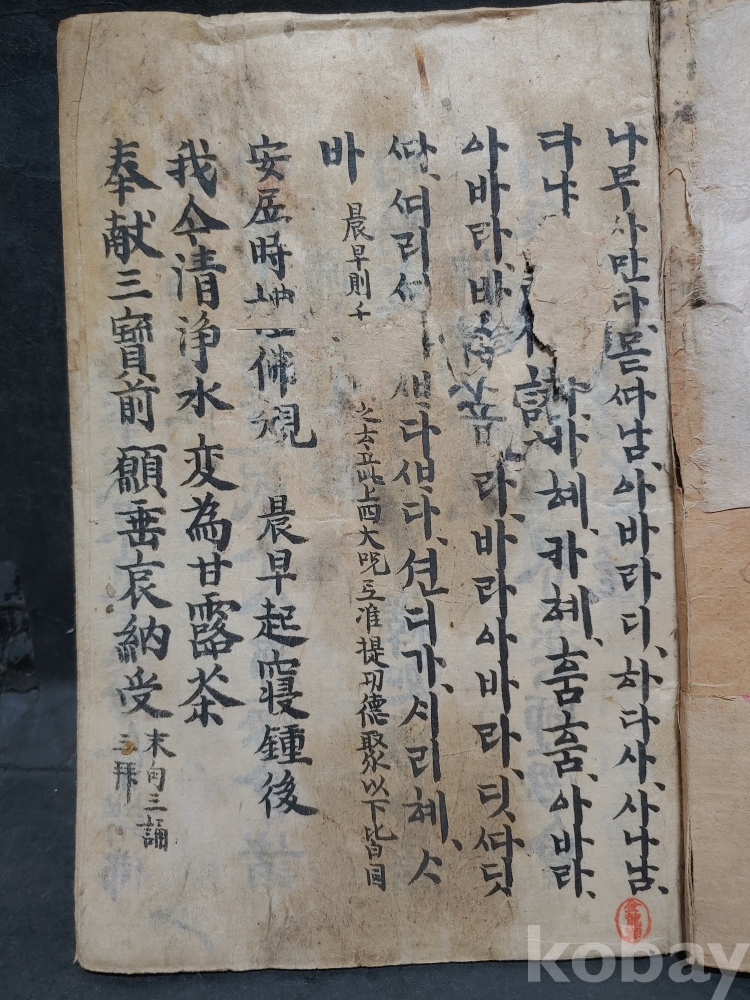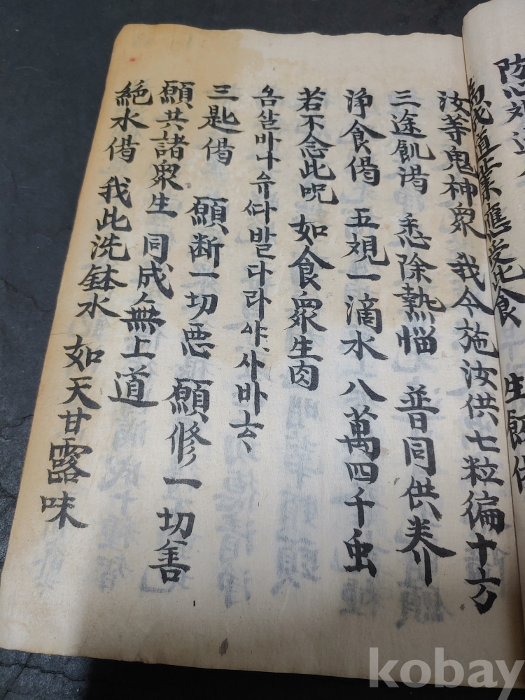 물이 묻어서 떡진 부분과 떡진 부분에 일부 글씨가 앞부분에 탈락이 된 부분이 있으며 뒷면에 떡진 부분과 일부 떨어져 나간 부분이 있으오니 참고로 하시고 신중한 입찰을 부탁 드립니다