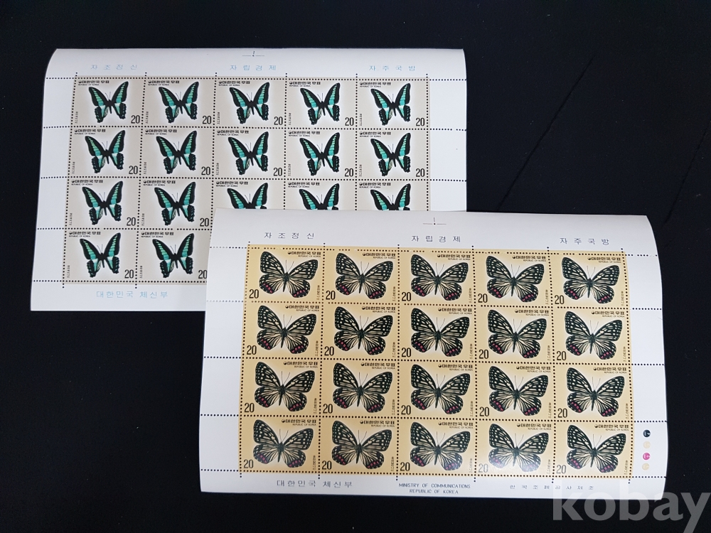 - 미사용 1976년 나비시리즈 - 제 4집 전지 2종 모음