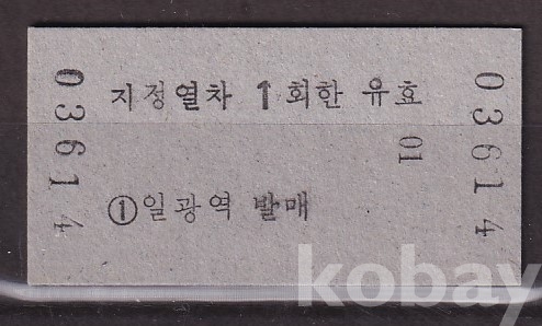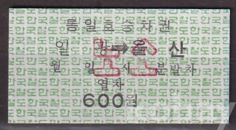 - 미사용 통일호 승차권 노소 " 일광 ▶ 울산 " 600원