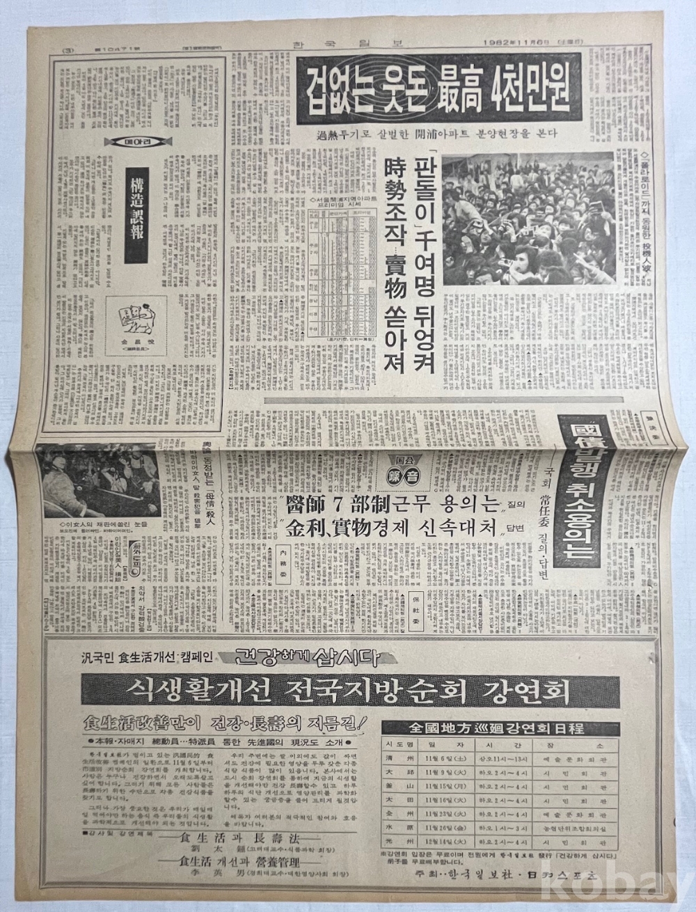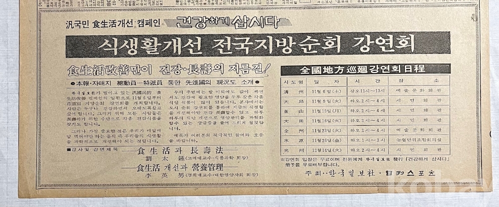 강연회 광고가 실린 1982년 한국일보 낱장입니다.