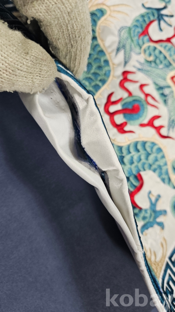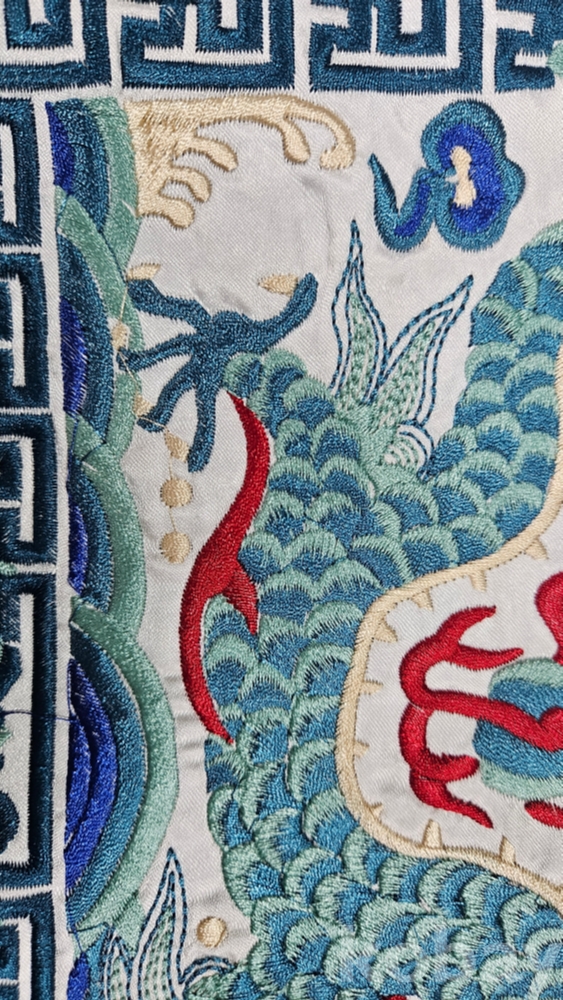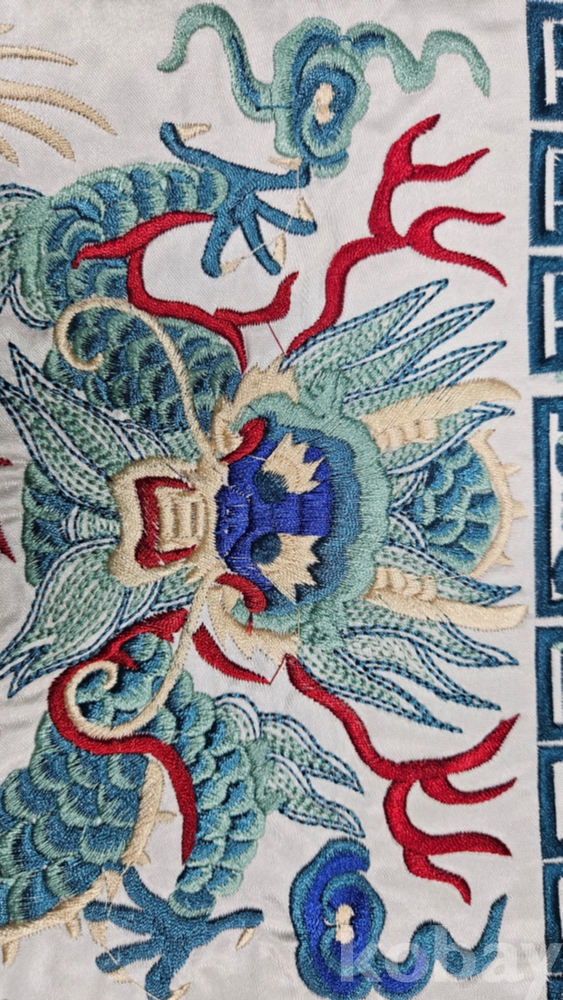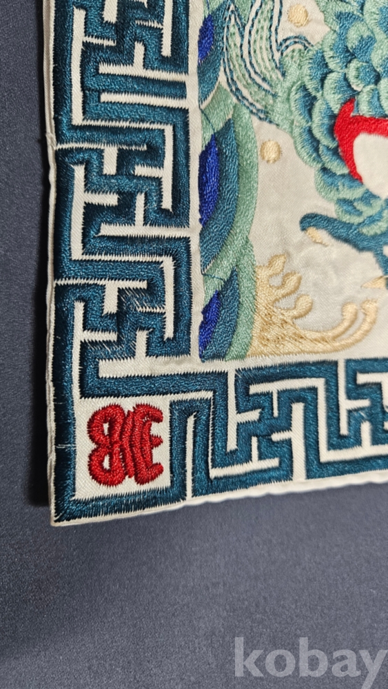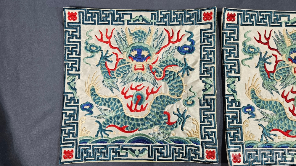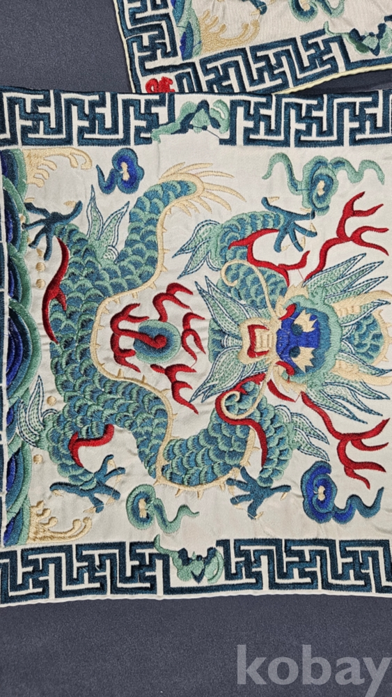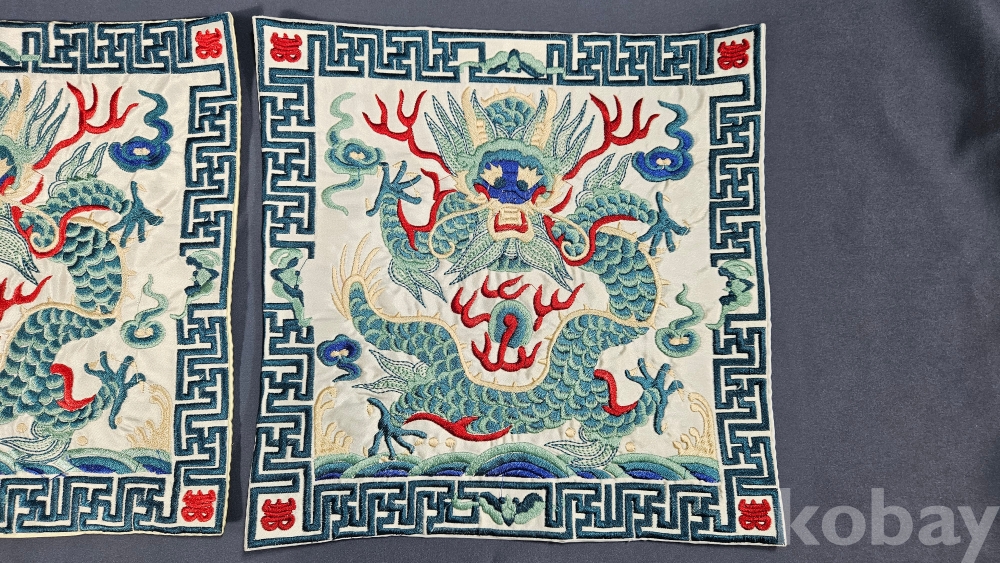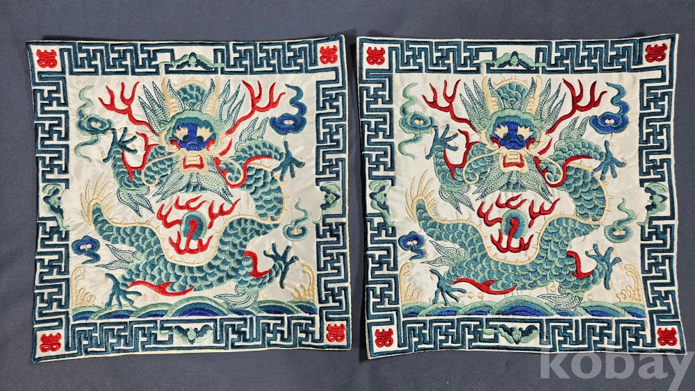 용 문양이 수놓아진 자수 흉배 2점입니다.