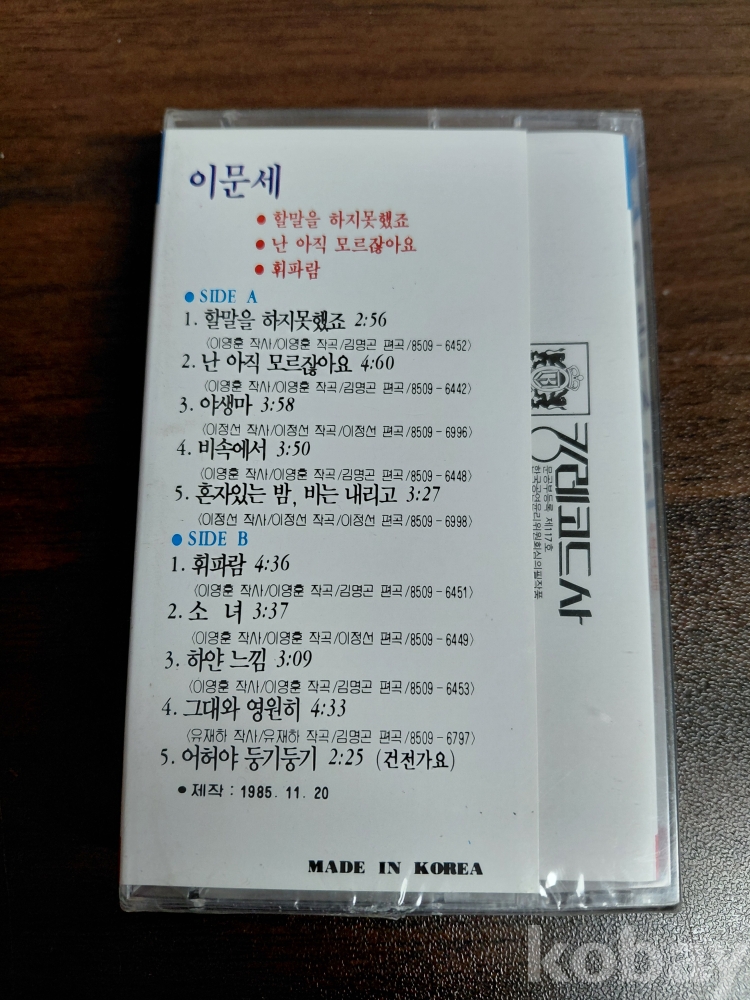 이문세 3집 킹레코드 정품 미개봉 카세트 테이프 입니다. 상태 좋습니다.