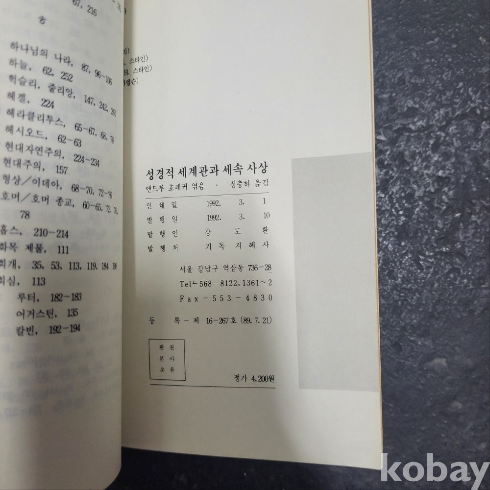 [천원경매] 성경적 세계관과 세속사상 ; 중급/서고s1009