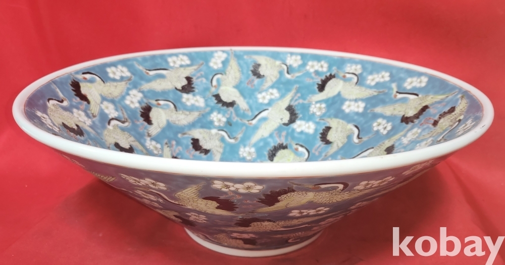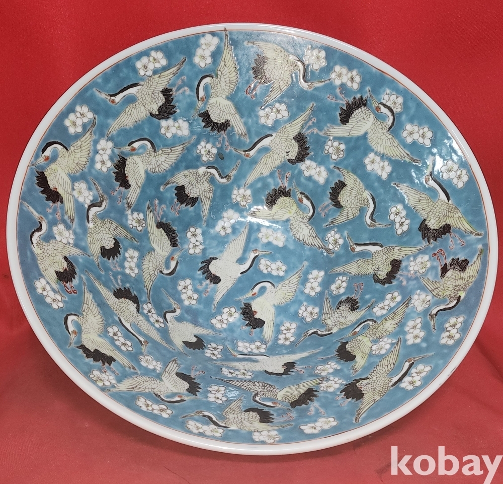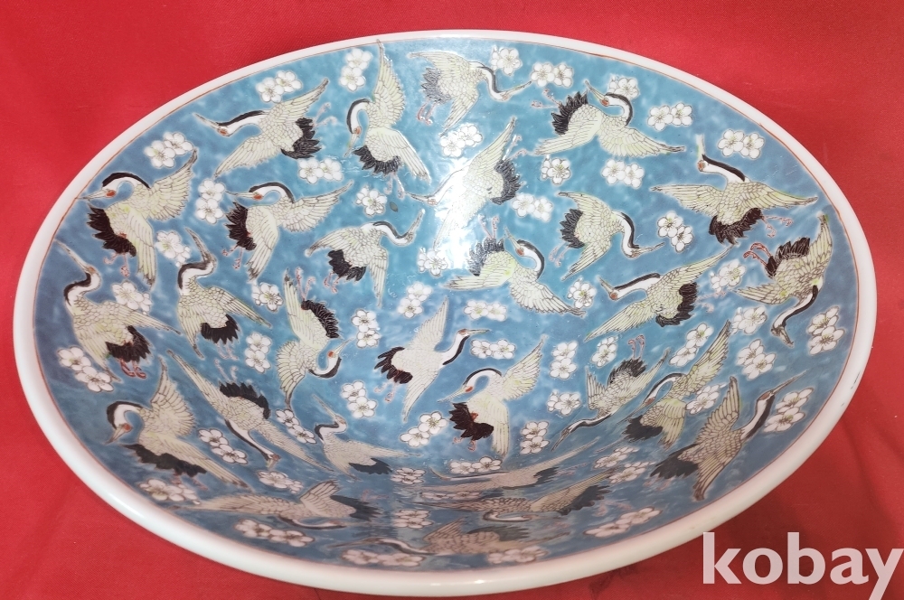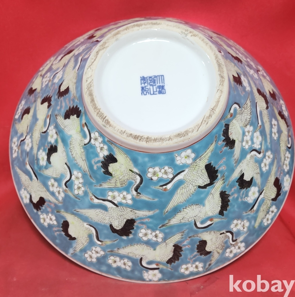 대청옹정 관지 보이는 꽃과학(花鶴)문양 큰 완입니다,