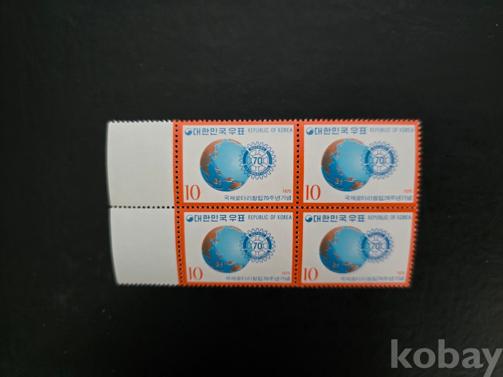 미사용 명판 우표 75'2.23,국제로타리창립70주년2-1