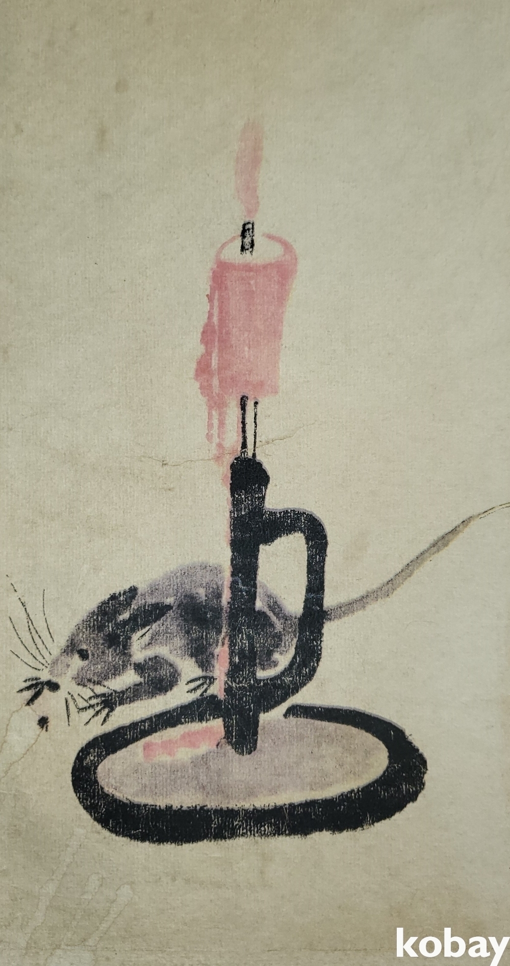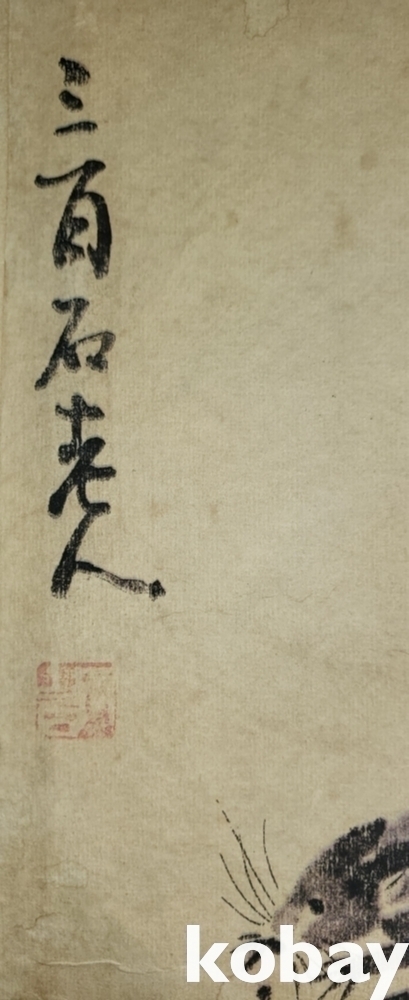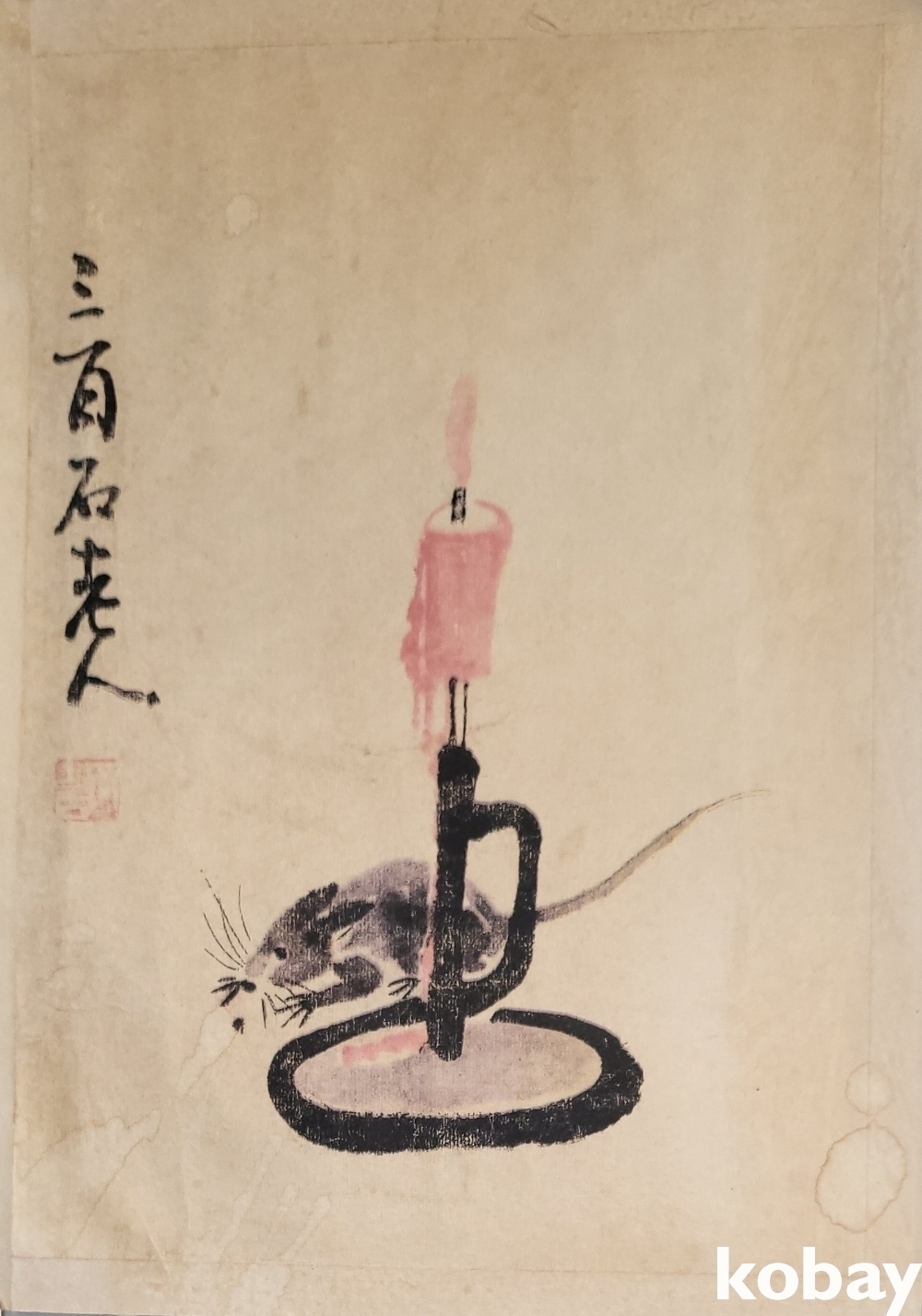 중국의 유명화가 제백석 수결이 보이며 종이에 채색된 쥐 (鼠) 그림입니다,