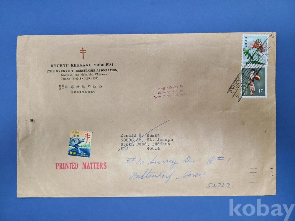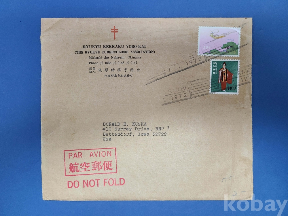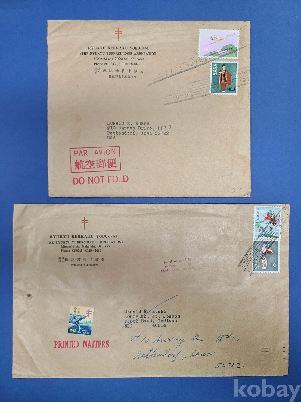 [크리스마스 씰] 琉球(RYUKYUS.류큐)/1971년 유구결핵예방회 실체봉투 2매