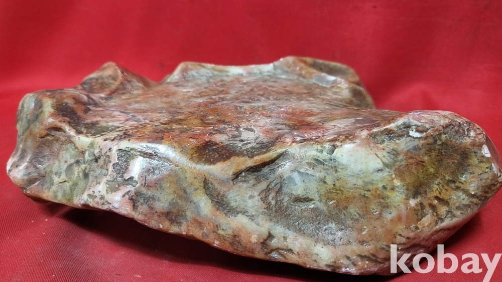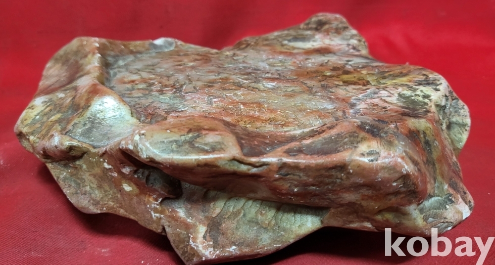 홍석(紅石)에 원산경(遠山景)이 뚜렷한 백두산 천지를 조각한 귀한 조각품입니다,