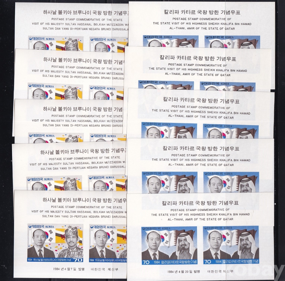 - 미사용 1984년 전두환 대통령 방문 기념 시트 2종 모음 / 하사날 볼키아, 칼리파 카타르