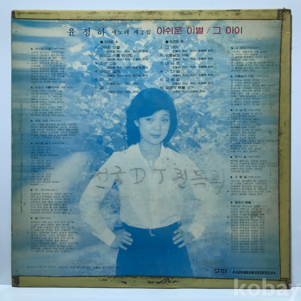 | 자켓상태 | VG : 주름, 접힘, 모서리 찢김 다수 | 음반상태 | EX : 재생에 영향 없는 가벼운 기스 존재 | 발매정보 | 알수없음 | 가사지여부 | 무 |