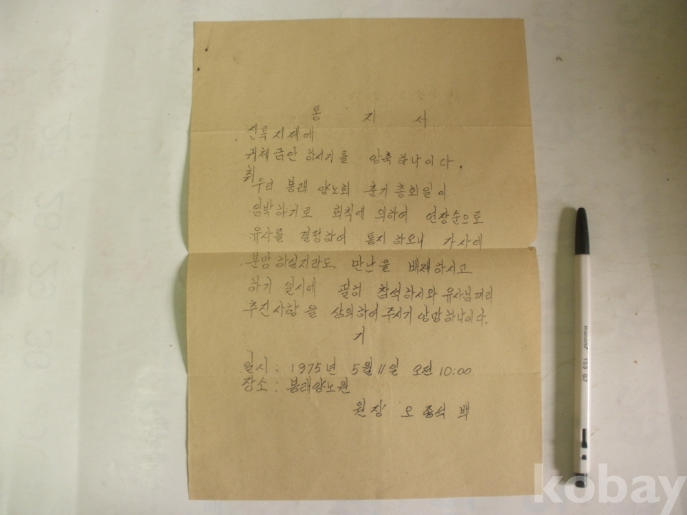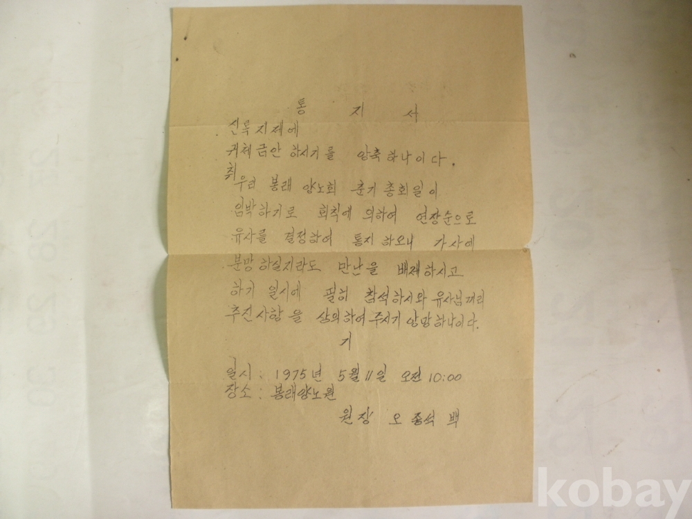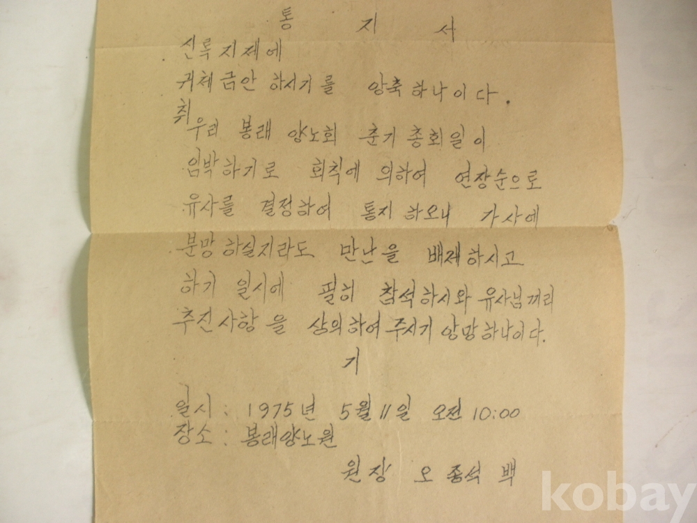 봉래양노회 연장순으로 유사 결정 통지 (1975년, 봉래양노원)