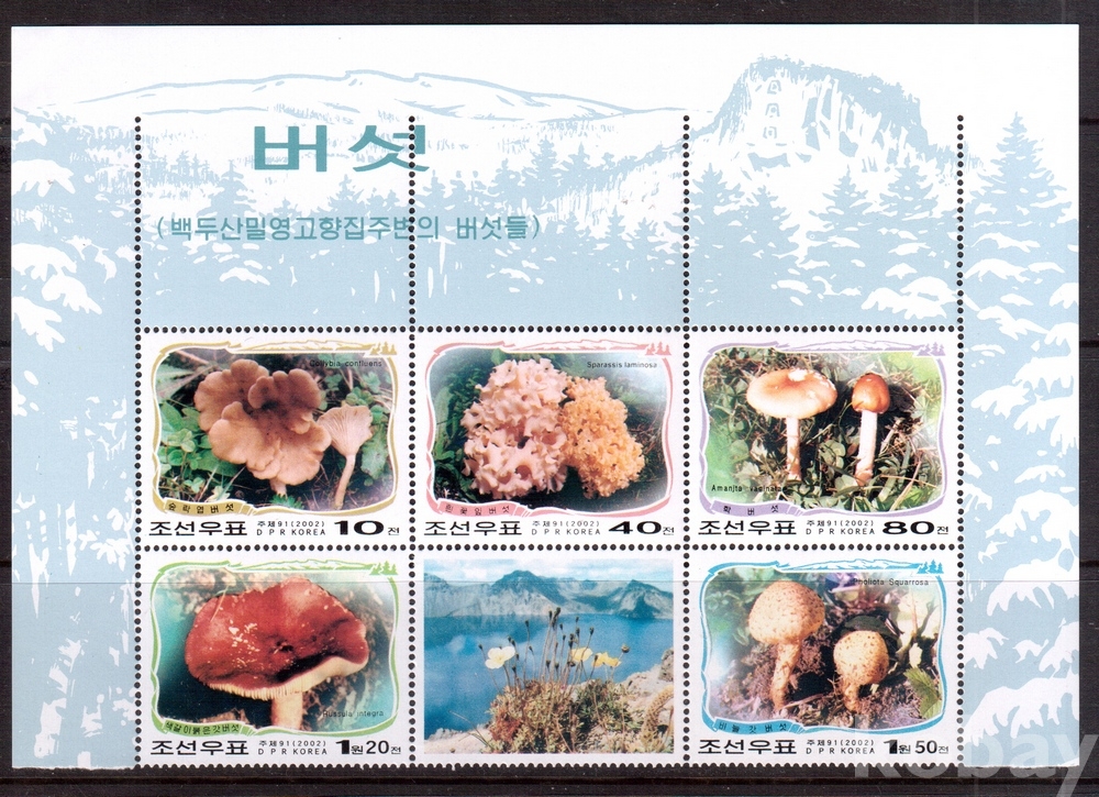 (버섯) 북한 2002.2.25 버섯 sheetlet of 5+label MNH